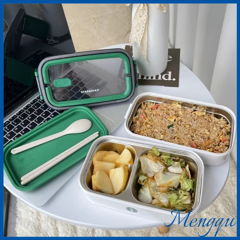 Starbucks Fashion Double Layered Insulated Meal Box 304 Stainless Steel Large Capacity Portable Long Term Insulated Bento Box with Microwave Heating