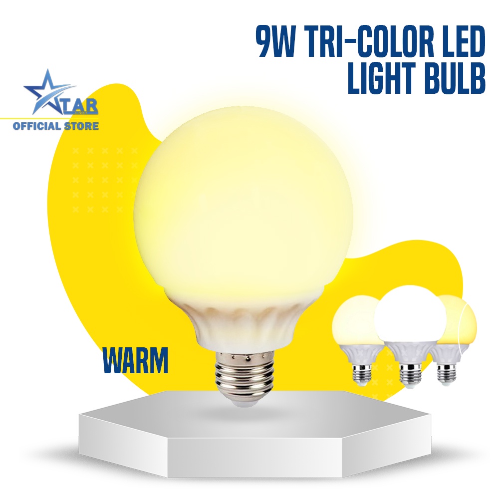 Starlight E27 9W LED Light Bulb White Power Saving Round LED Bulb / Warm White / Tricolor