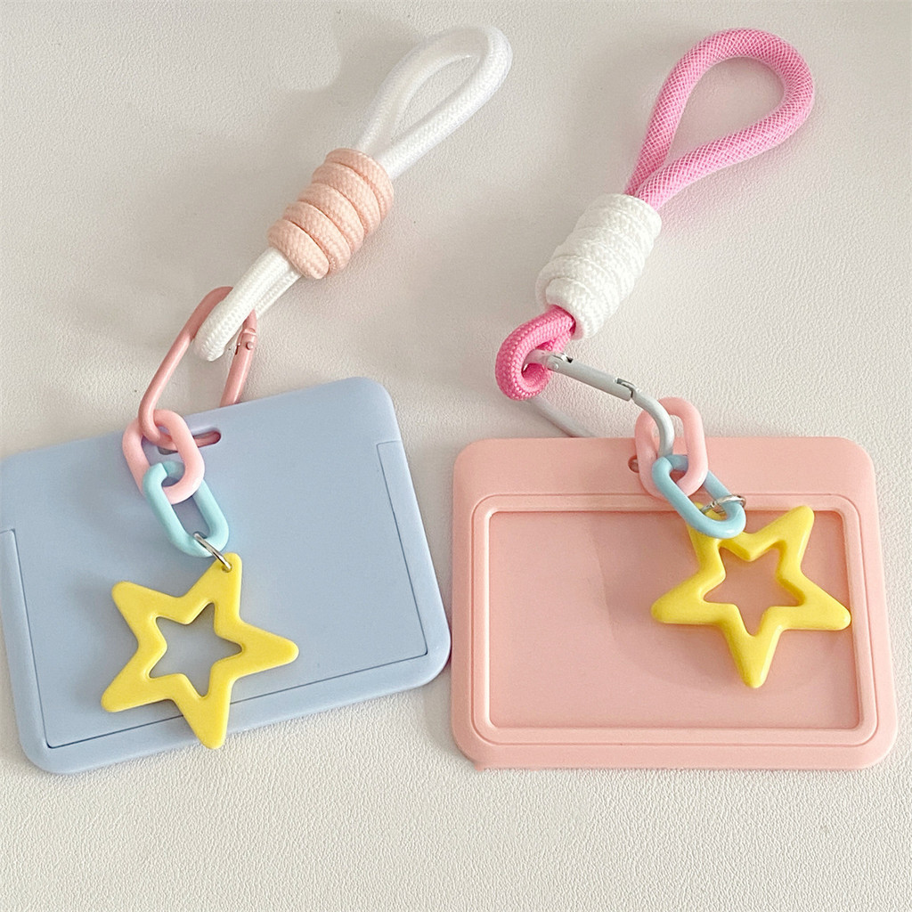 Stars Photocard Card Holder With Lanyard Solid Color ID Card Holder Name Card Cover Student Bus Card Holder Kpop Photo Sleeve Cute Accessories