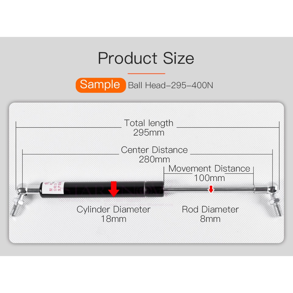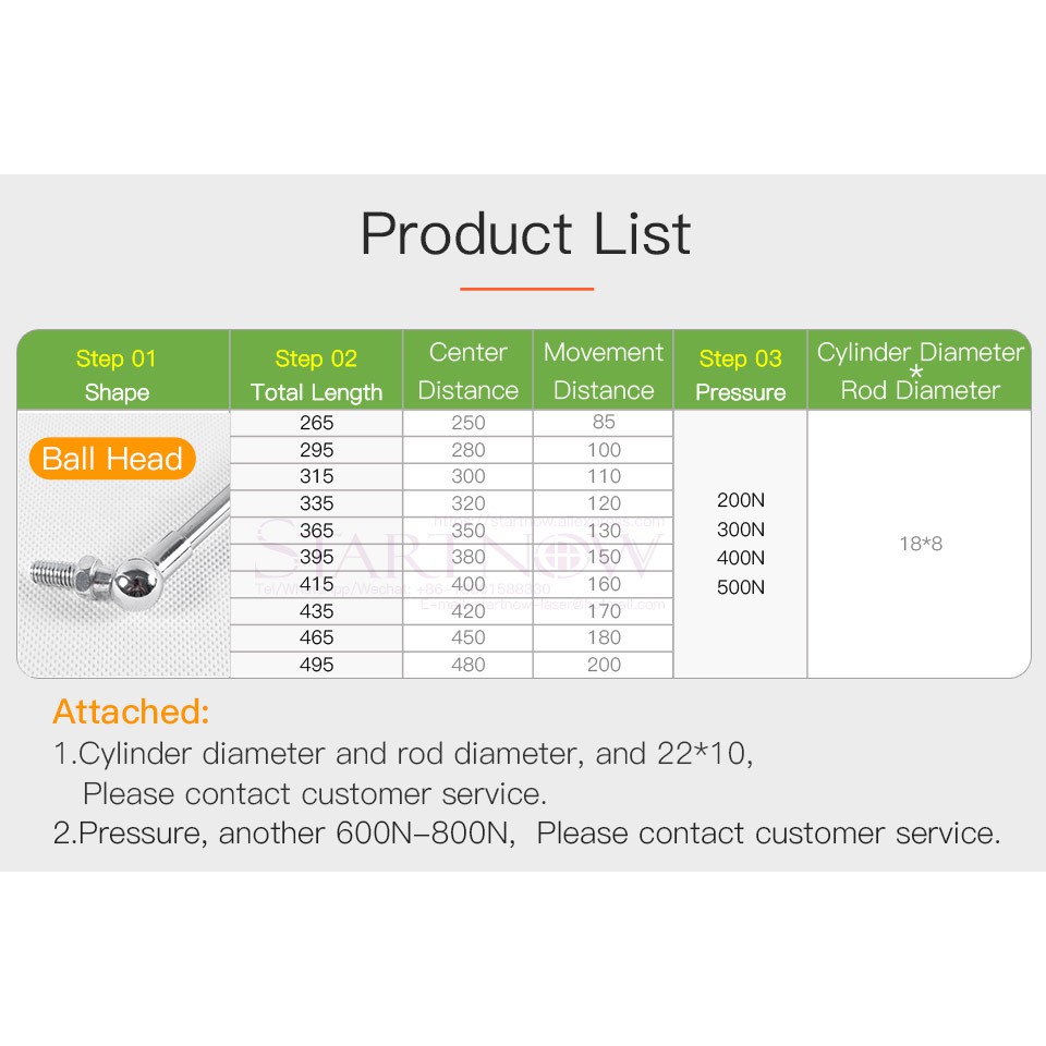 Startnow Hydraulic Support Rod 18*8mm Gas Springs 300N 400N Pneumatic Spring Ejector Rod For Laser Cutting Engraving Machine