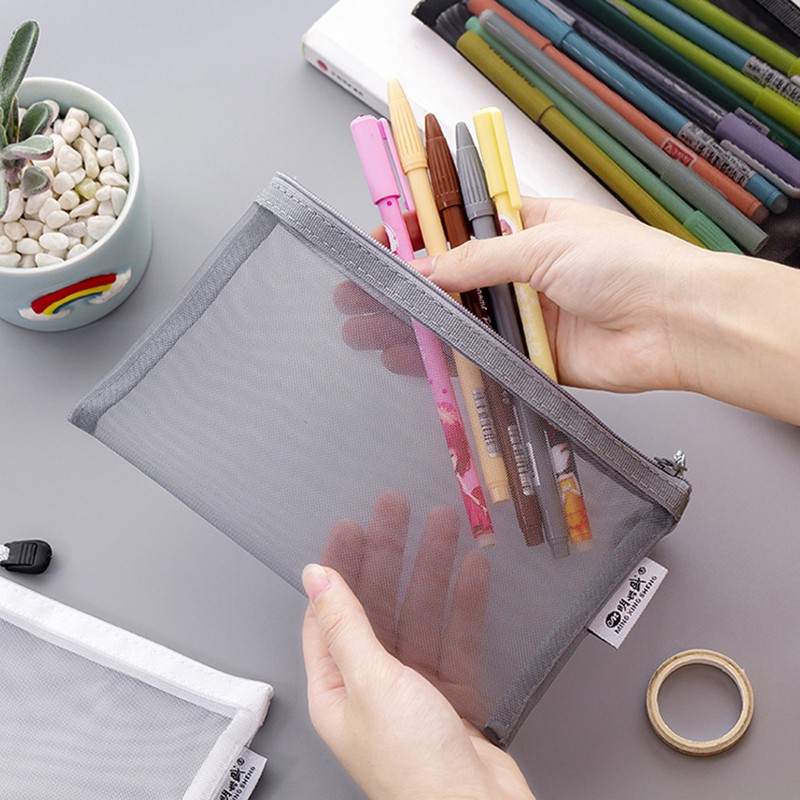 Stationary Mesh Pen Bag Nylon Pencil Bag Pencil Case Mesh Pen Case Pouch Pencil Pouch