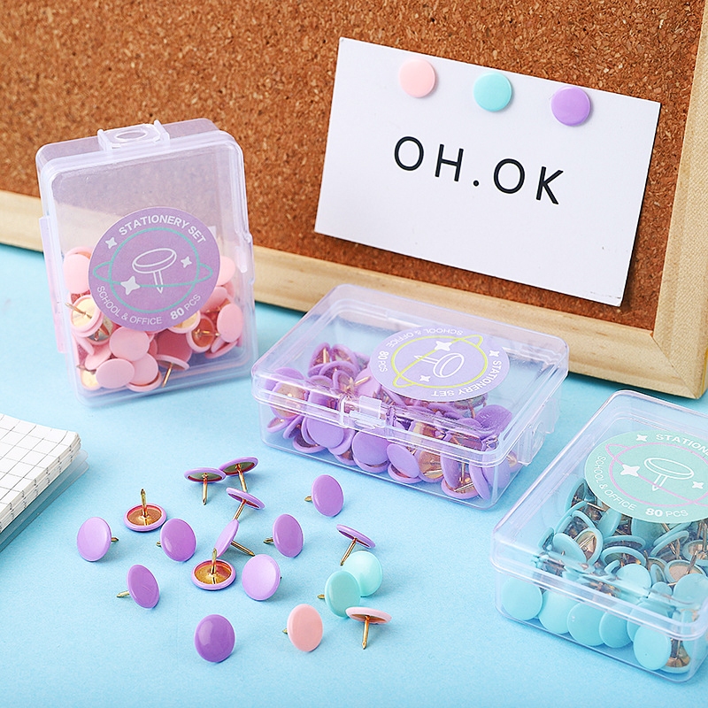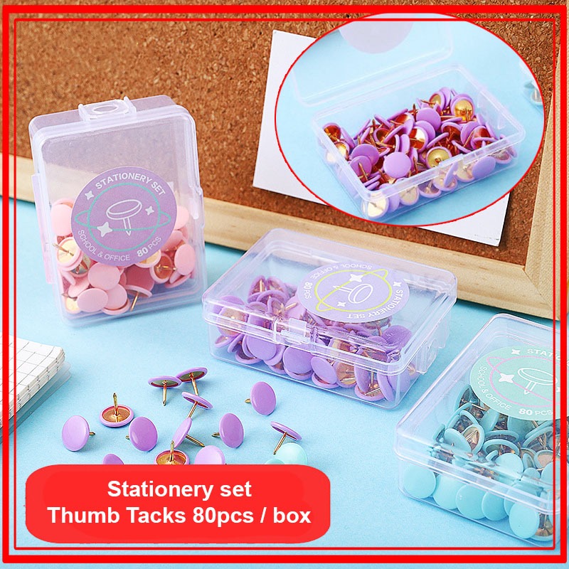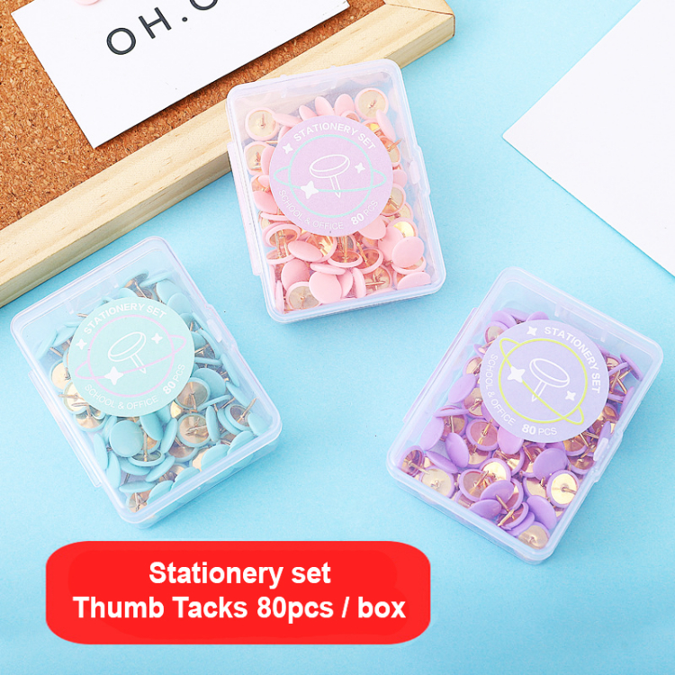 Stationery set school and office Thumb tacks pastel color 80pcs thumb tacks per box
