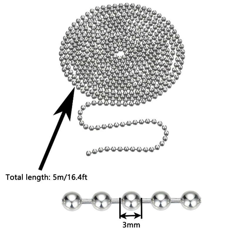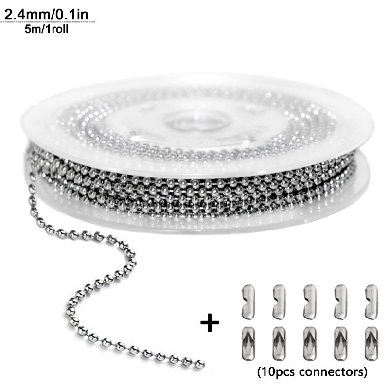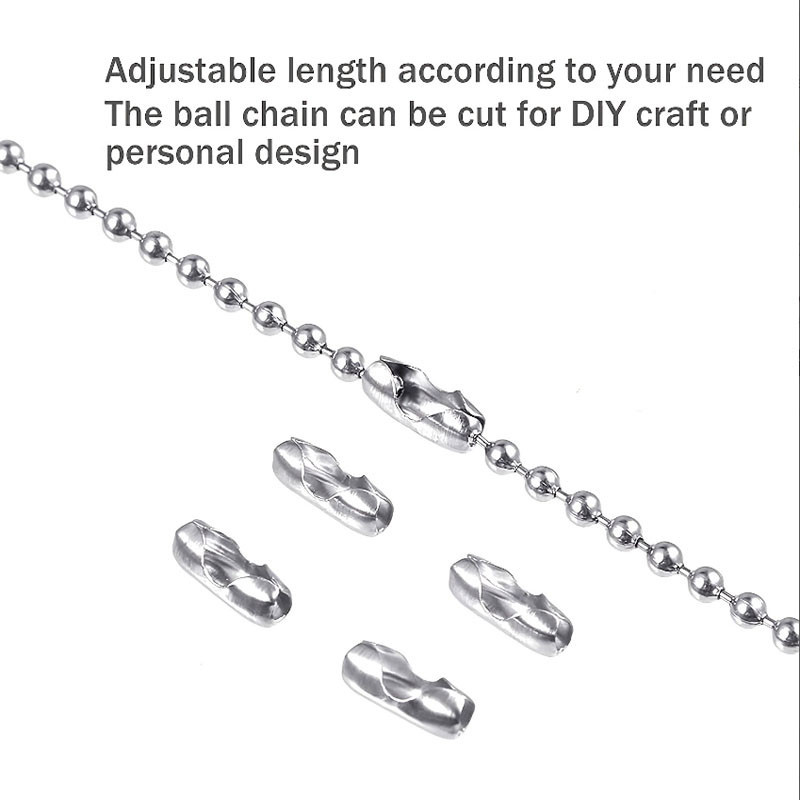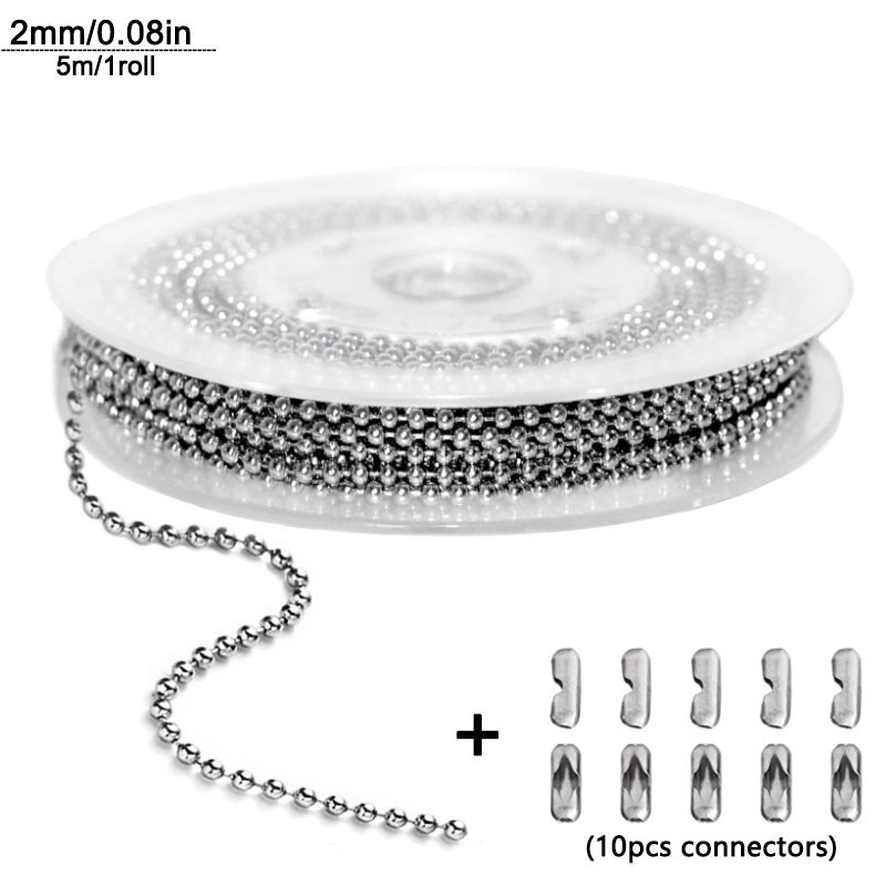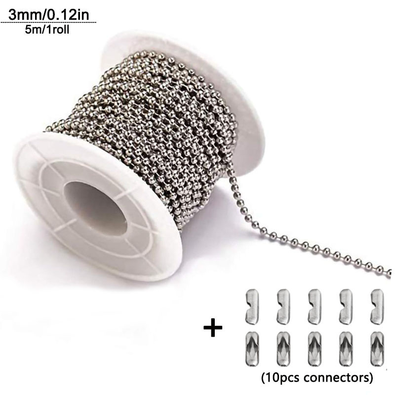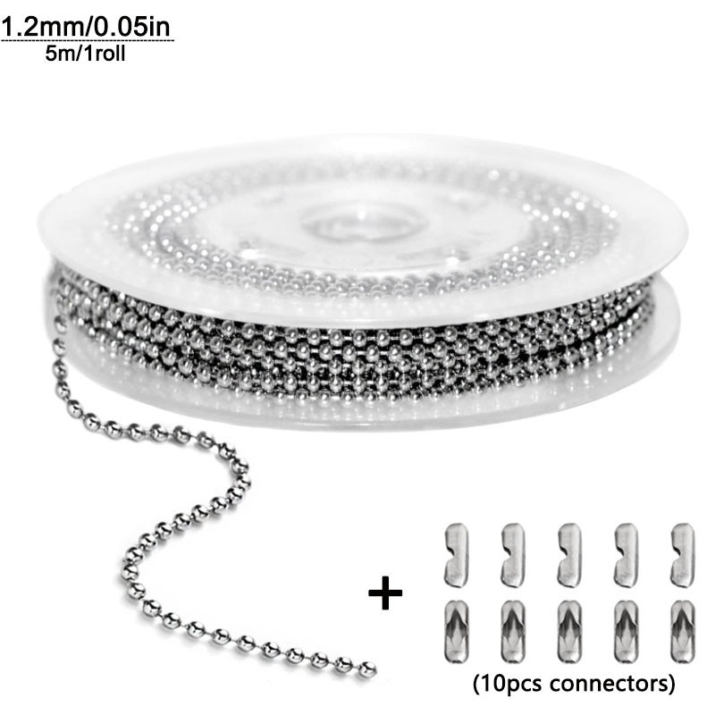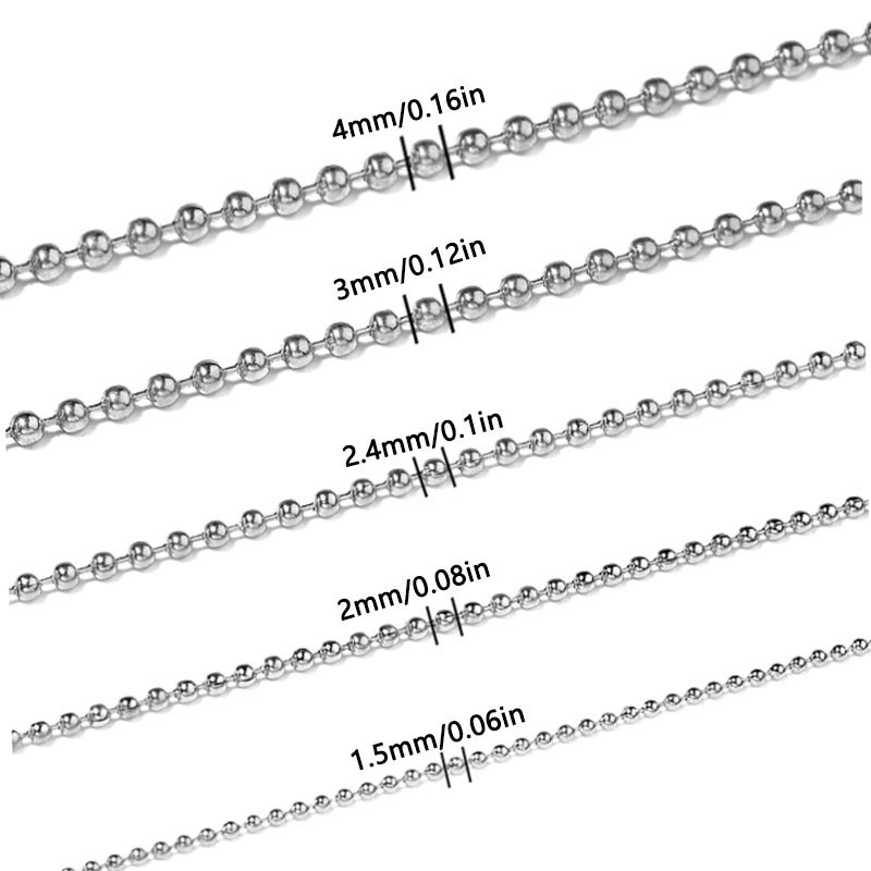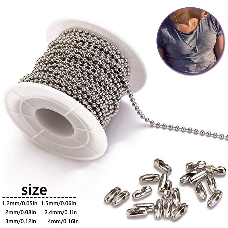 Steel Ball Chain Bead Dog Tag Chain Beaded Necklace Chains for Jewelry Making Bracelet Crafts, Silver Metal Pull Chain Small Ball Bead Chain Roll 5m1.2-4mm
