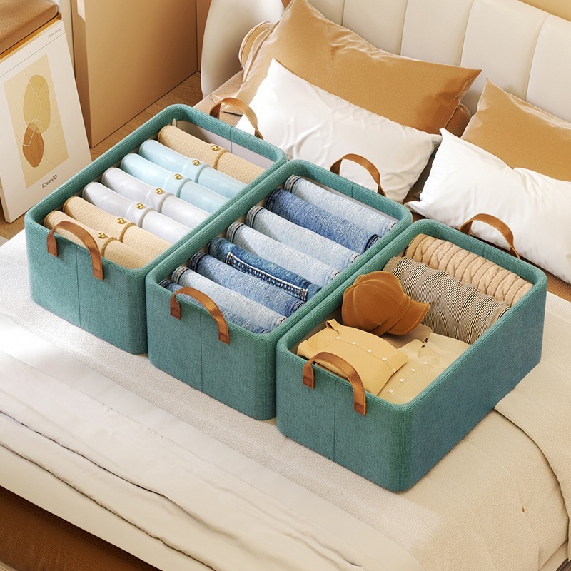 Steel Frame Cation Storage Box Folding Clothes Sorting Box Bedroom Fabric Art Portable Pants Storage Box Organizing