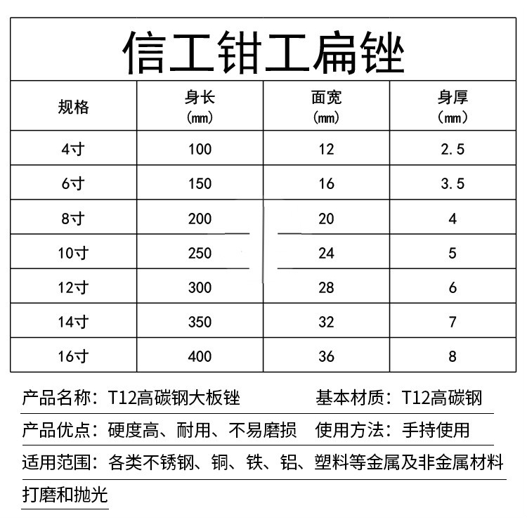 Steel file large plate file mold file flat flat file rough tooth \ middle tooth \ fine tooth 4/6/8/10/12/14/16 inch