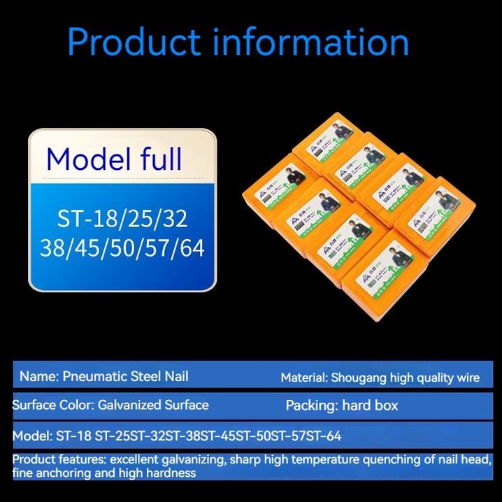 Steel nails for electric nail gunner pneumatic ST18 ST25 ST32 ST38 ST45 ST50 ST57 ST64 Steel row nai