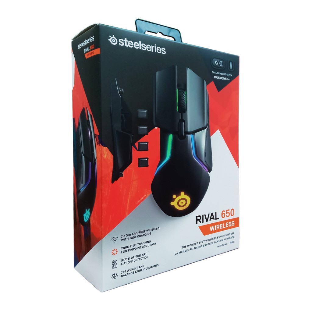 SteelSeries Rival 650 Wireless Gaming Mouse (RGB, Dual TrueMove3+ Optical Sensor, Weight System)