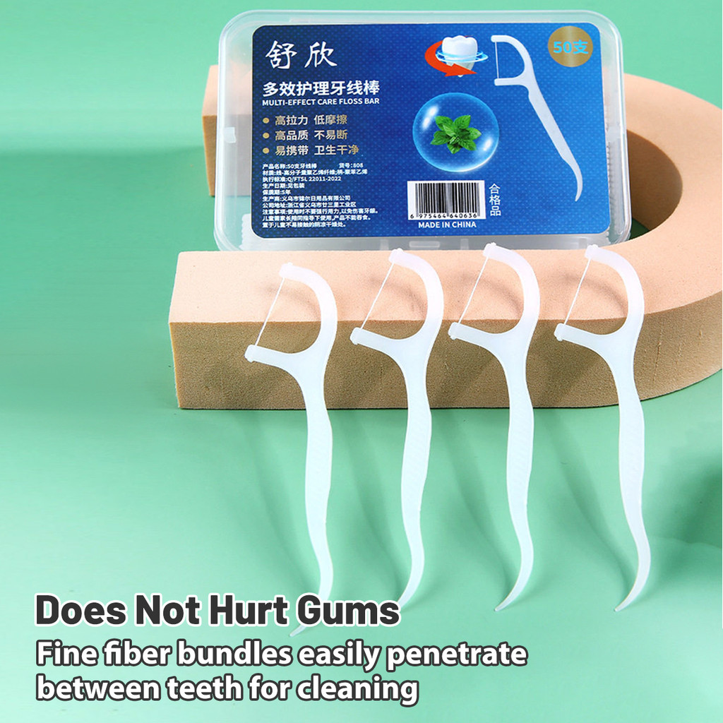 50 Pcs Dental Floss Picks Teeth Cleaning Flosser Sticks for Oral Care Ultra-fine Dental Floss Picks