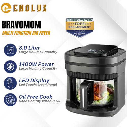 Enolux BravoMom HYPER 6L Multi-Function Air Fryer Oil-free [XL Size] Ecohealth Series Home AirFryer