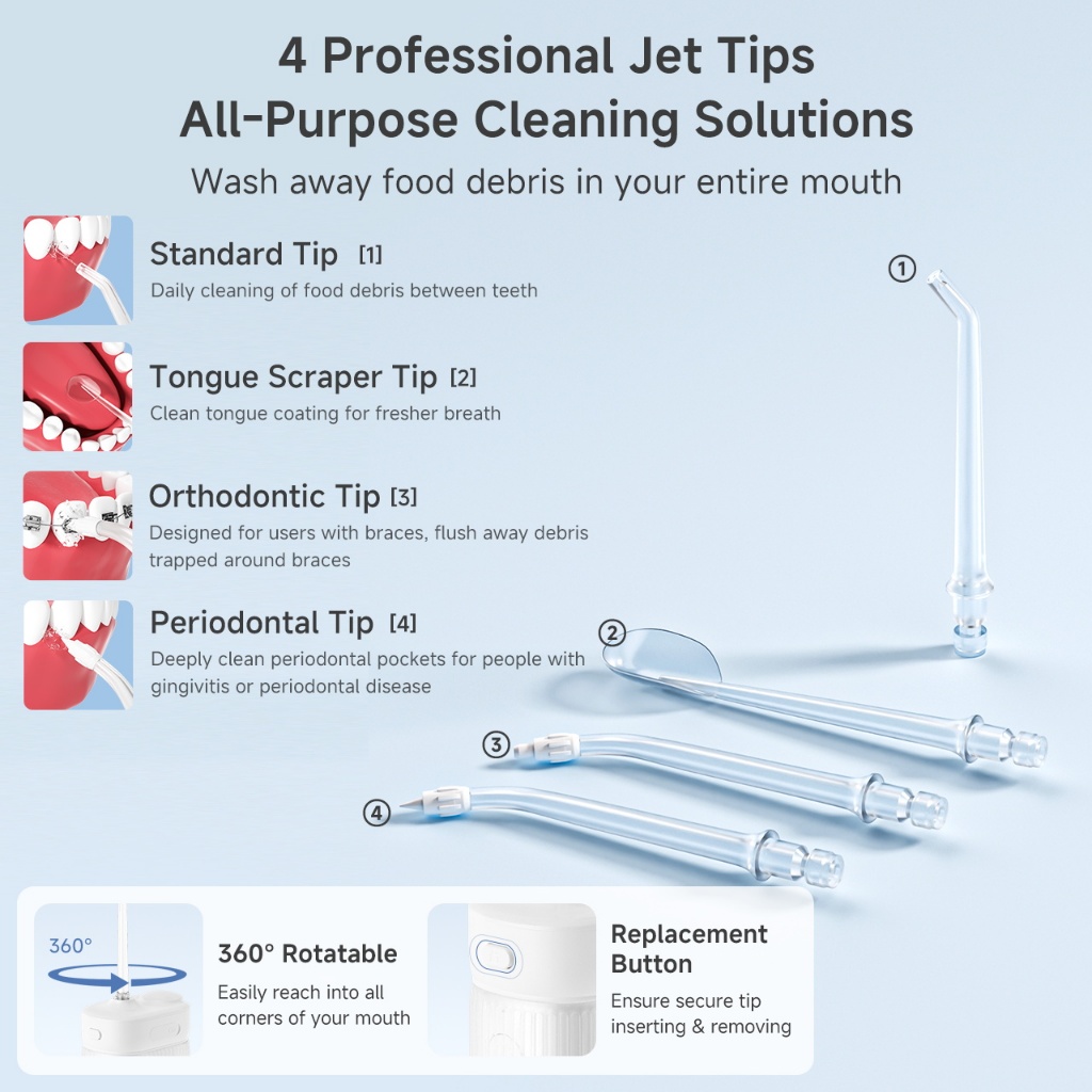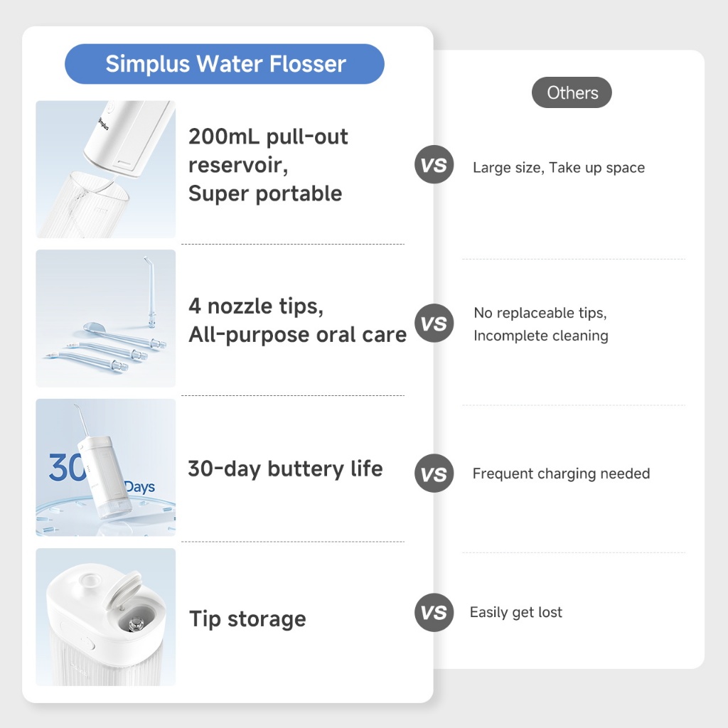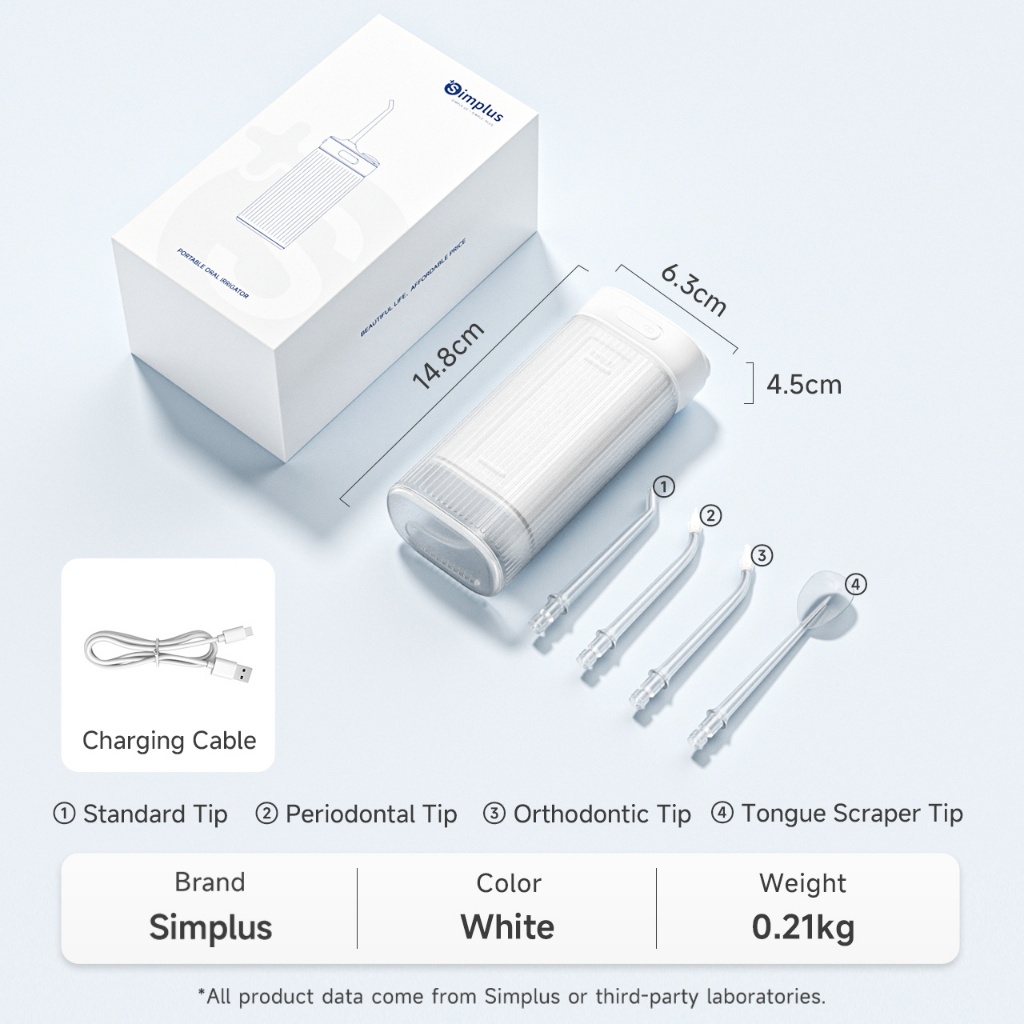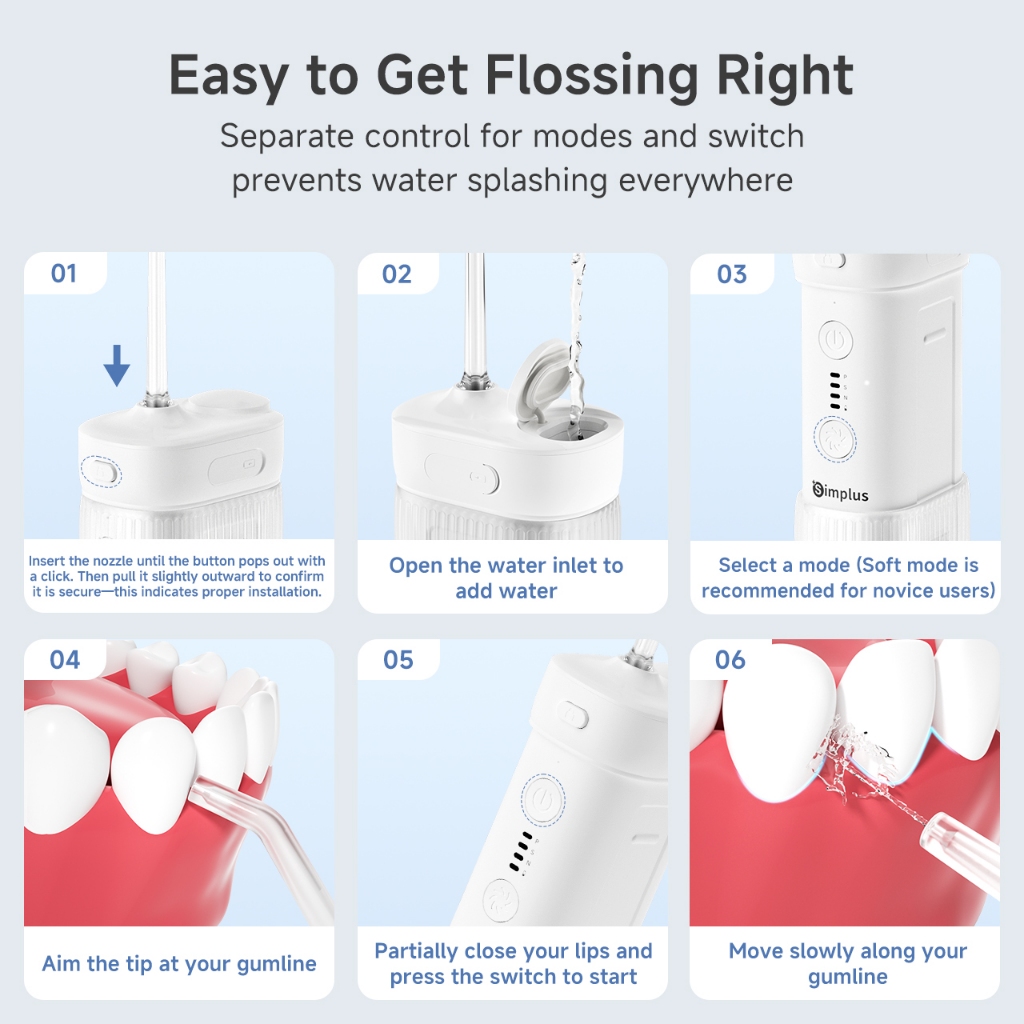 SimplusPink Water Flosser Rechargeable Travel Portable 4 Nozzle Tips 200mL Oral Irrigator Dental Kit