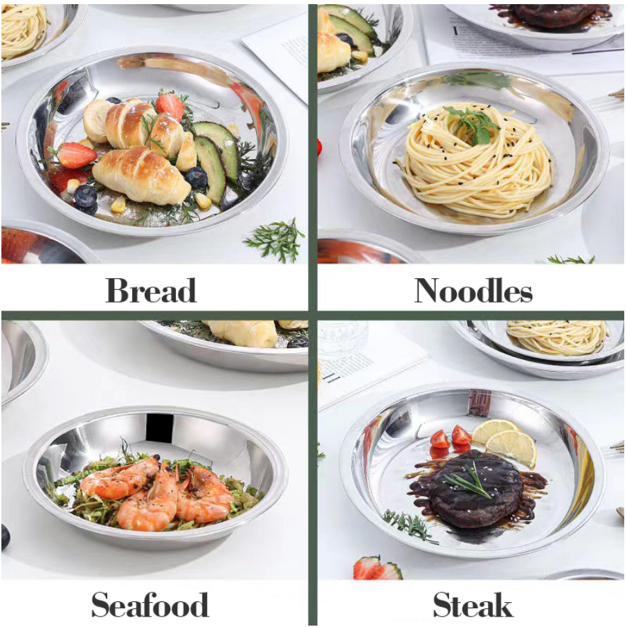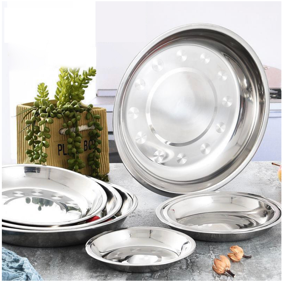 1/3pcs Stainless Plate Round Tray Eco-Friendly Stainless Steel Dinner Plates Round Plate Tableware
