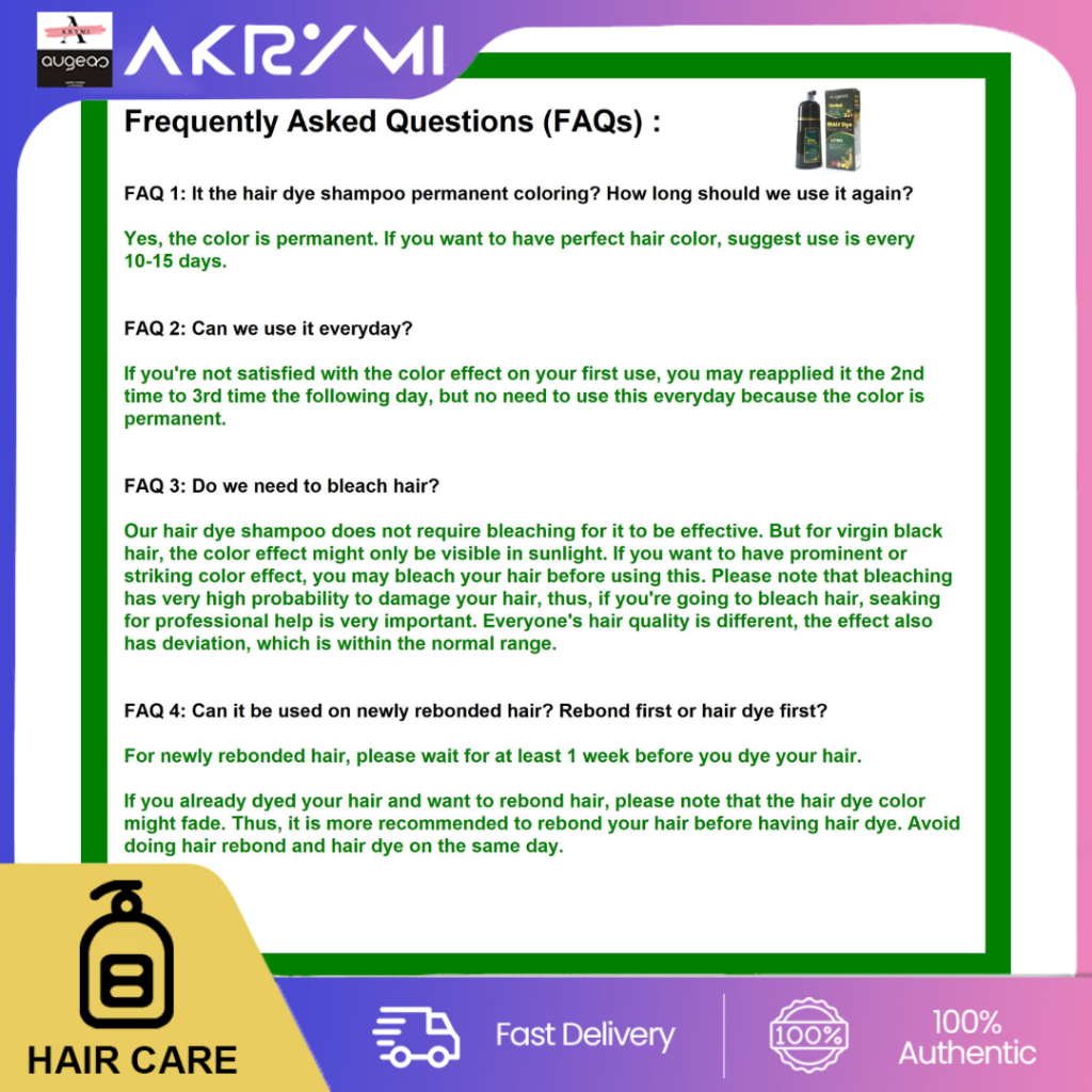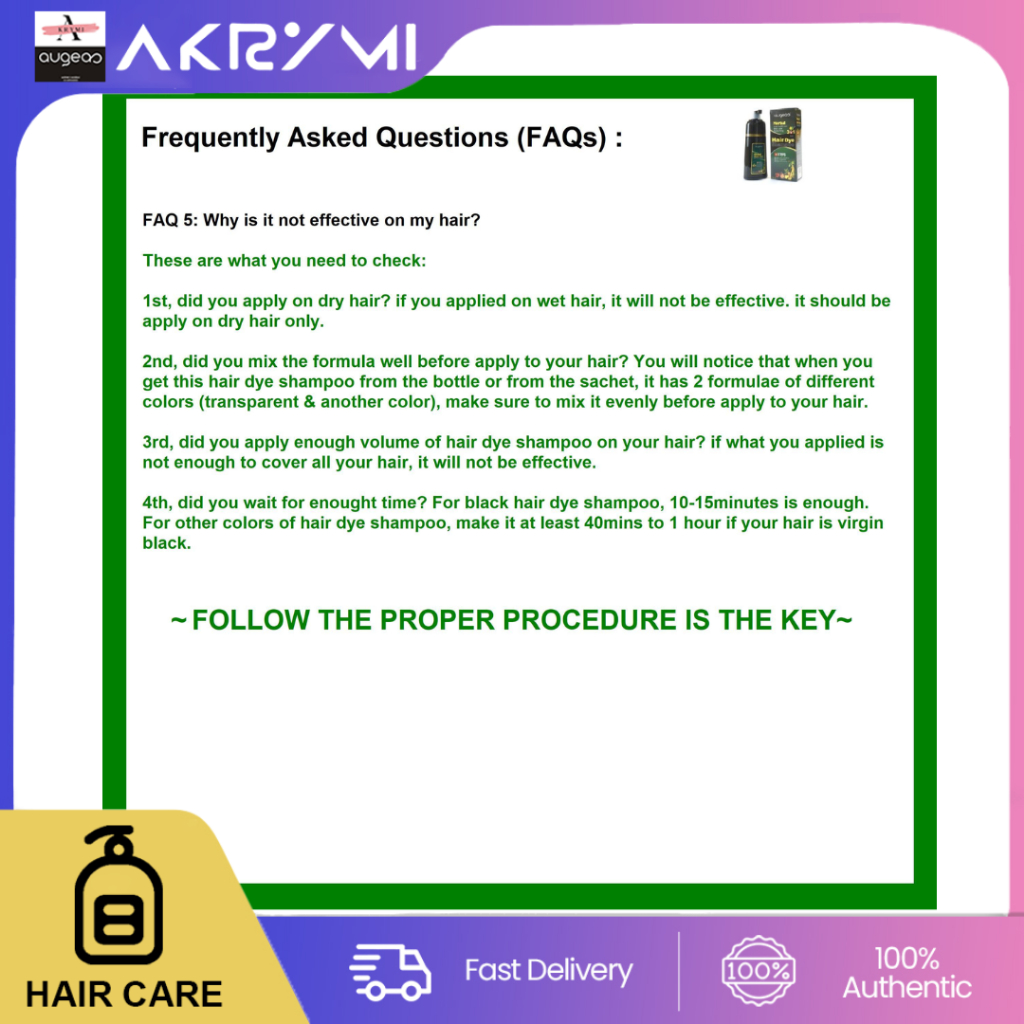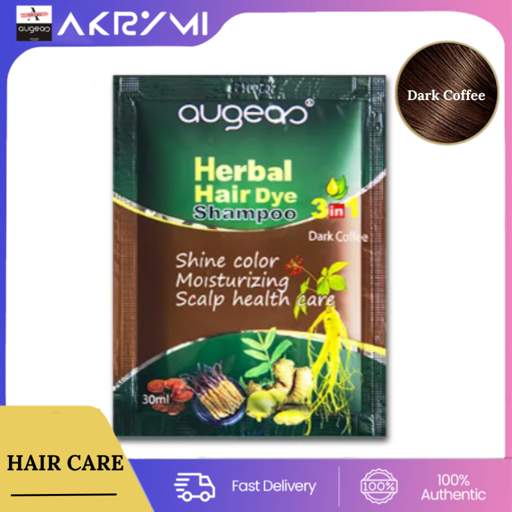 AKRYMI AUGEAS HAIR DYE SHAMPOO (Dark Brown) 30mL Sachet Pack Haircare FDA Approved