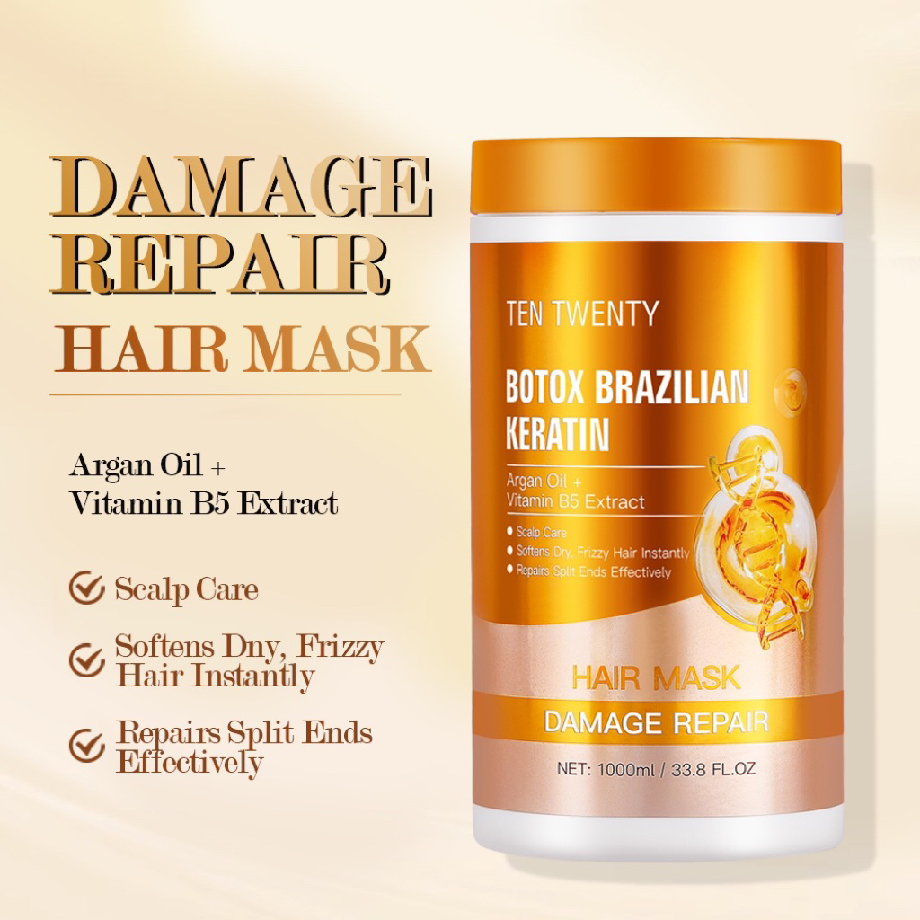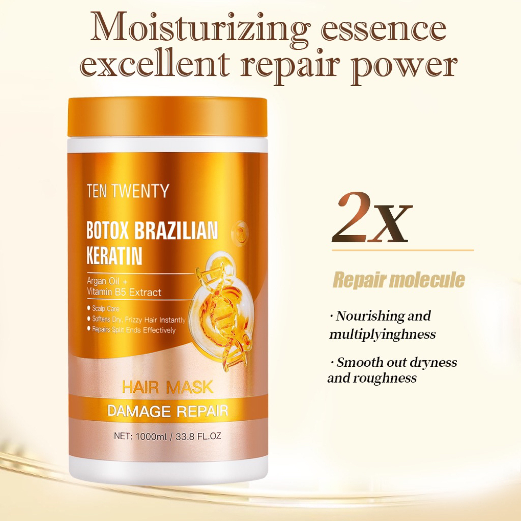 Brazilian Keratin Hair Mask 1000ml Gold for DAMAGE REPAIR Soften Dry Frizzy Hair FDA APPROVED