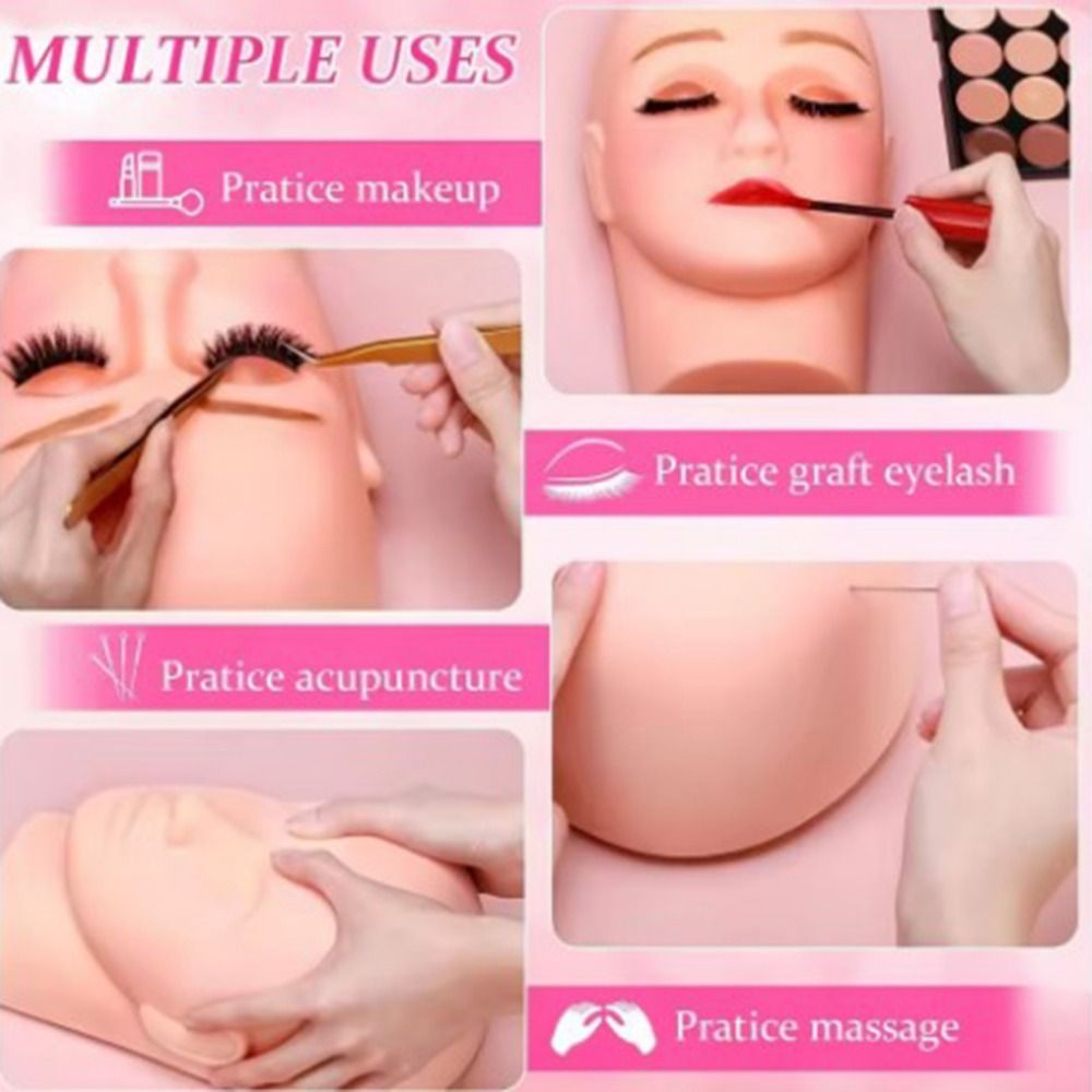 WADEES Eyelash Extension Practice Model, Closed Eyes Beginners Mannequin Head, Cosmetics Model Flat Head Realistic Skin Texture Portable Massage Practice Model Makeup Training