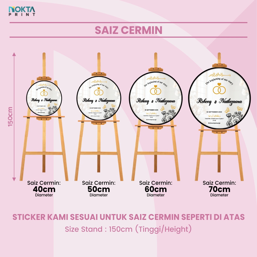 Sticker Cermin Bulat Kahwin Tunang Wedding Sticker Mirror Sticker Cermin Mirror Signage