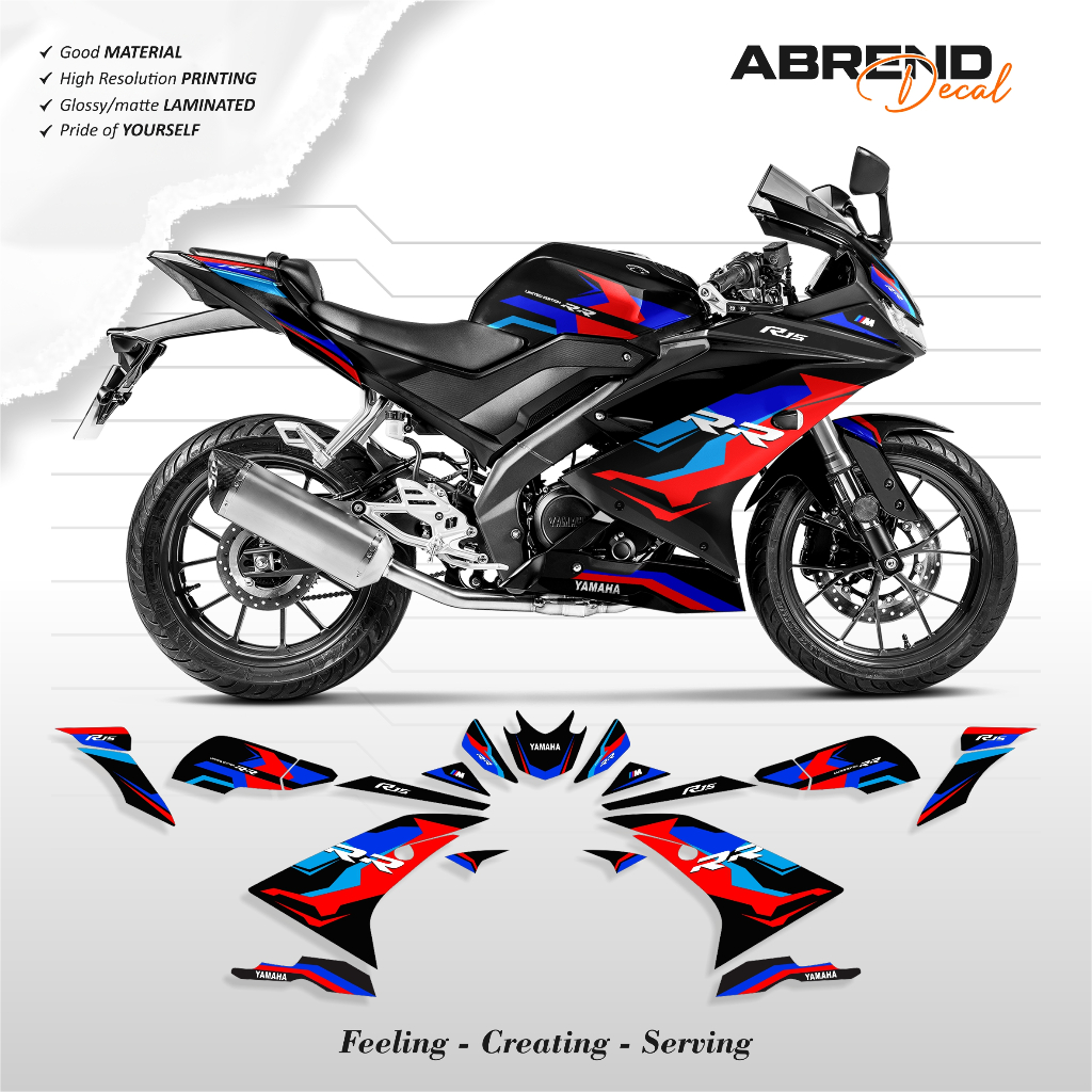 R15 STICKER LIVERYV3 TRI COLOR RACINGbmw YAMAHA R15 STRIPING/ V3 R15 CUSTOM STOCK DECAL STICKER/