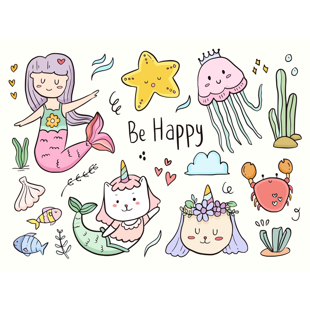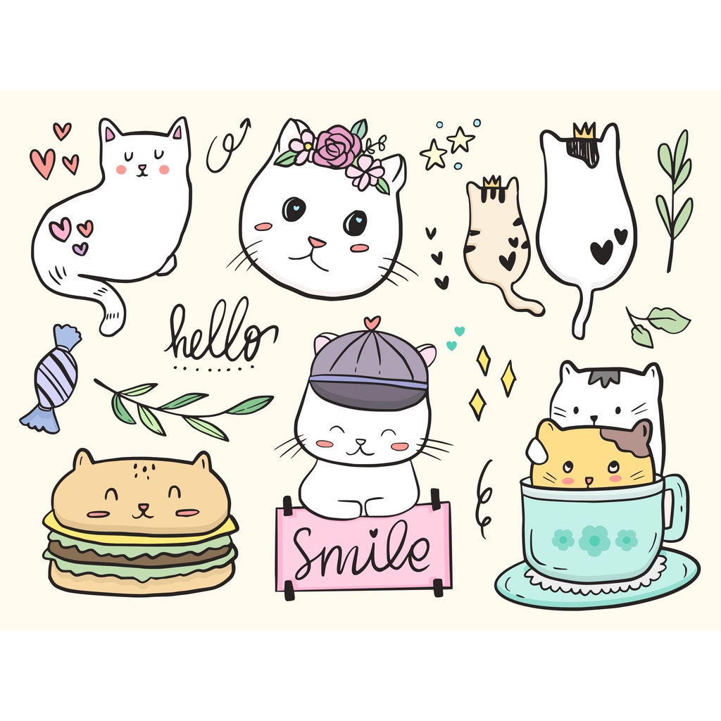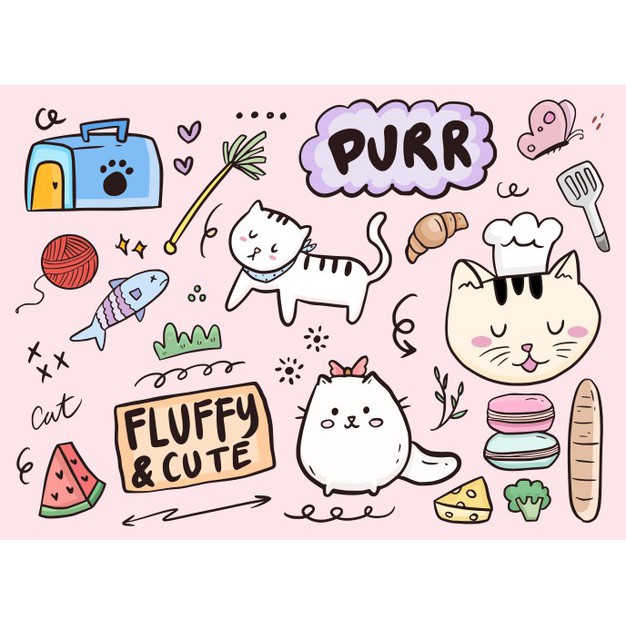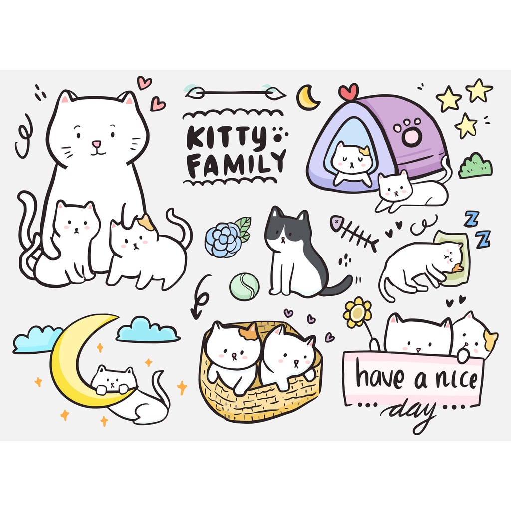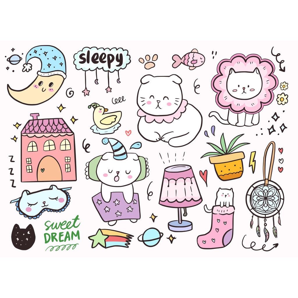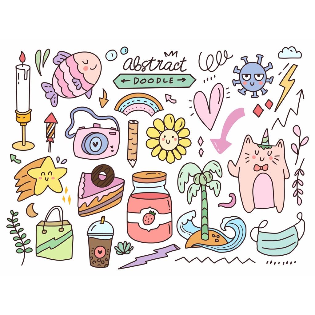 Cute Tumblr Vinyl Sticker "DOODLE" l Aesthetic Cutting Sticker Kpop Thailand Bottle Helmet Sticker/