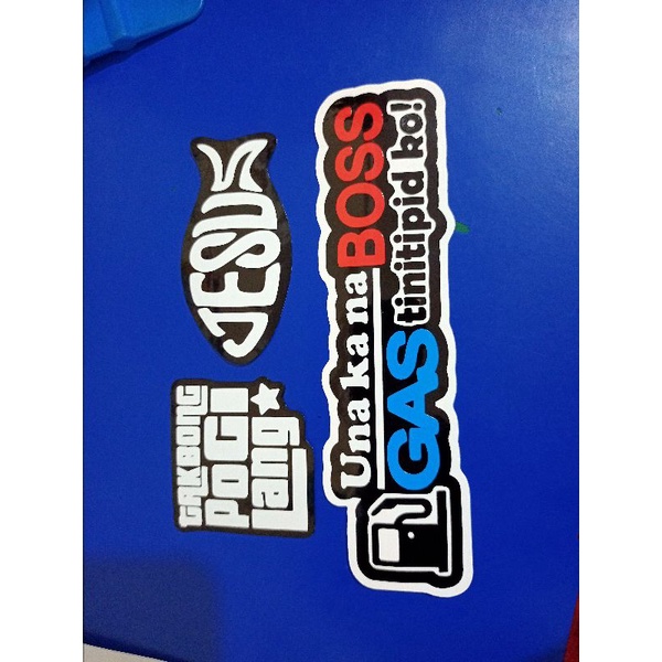Sticker for motorcycle UNA KA NA BOSS GAS TINITIPID KO with free Jesus and Takbong pogi lang sticker