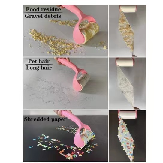 Sticky paper roller tearable hair remover and pet hair removal for clothing and furniture cleaning