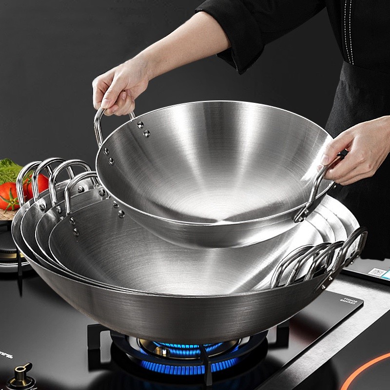 IKEA 32/38/43/50cm Stainless Steel Wok Raging Fire Stove Frying Pan Double Ear Iron Pot