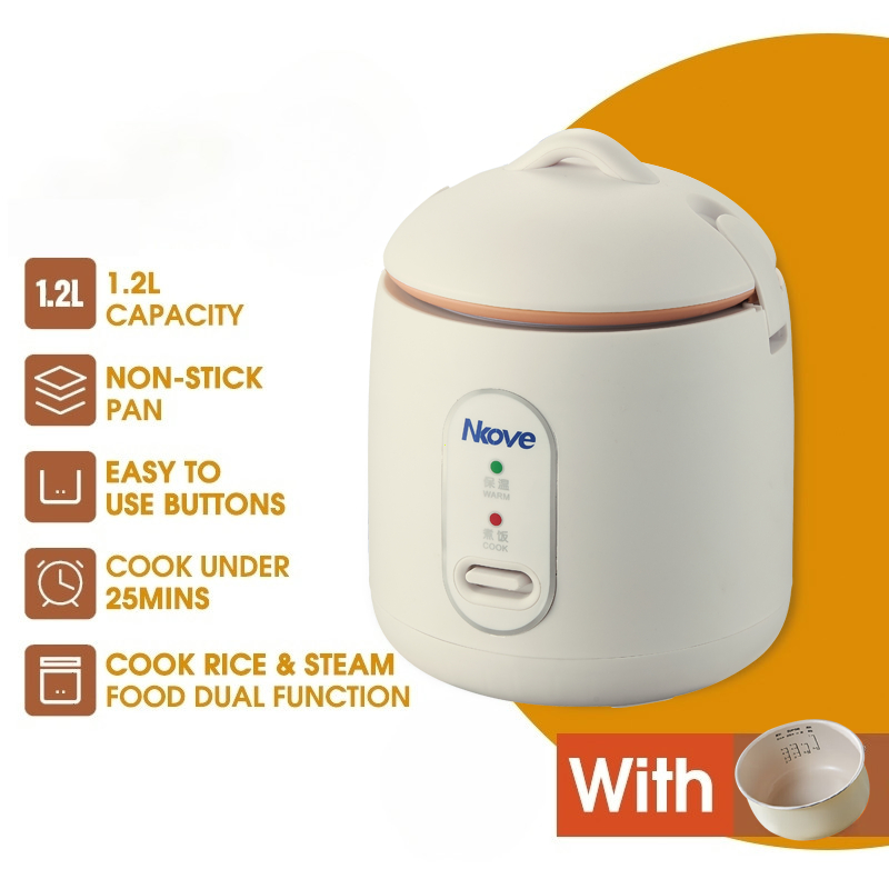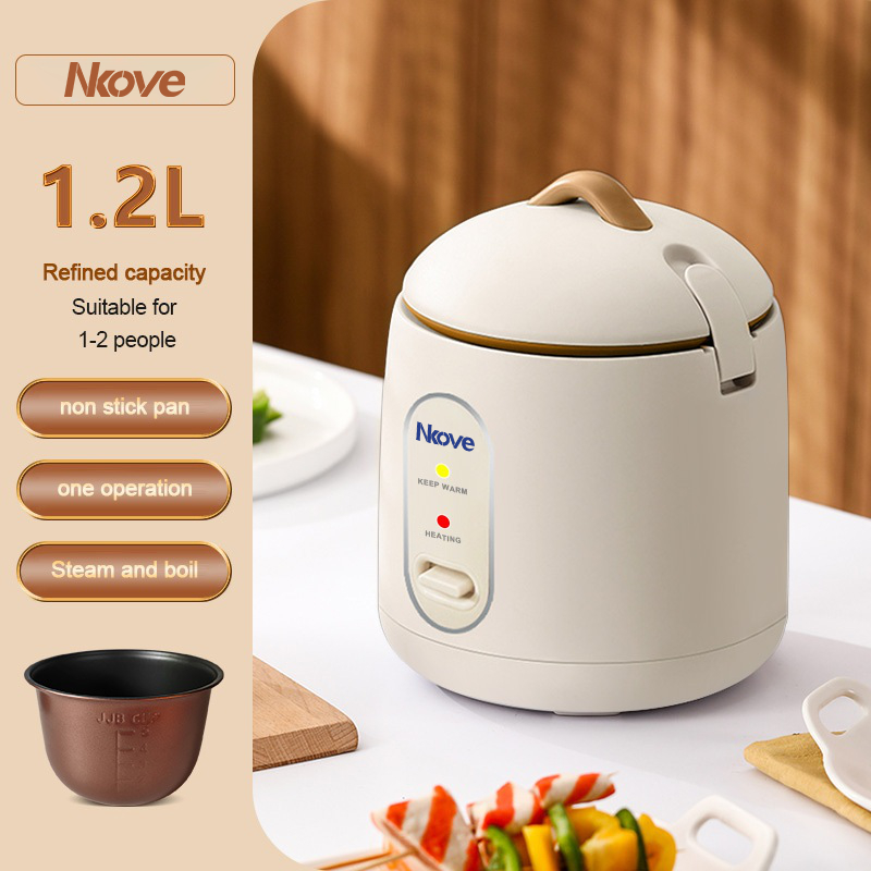 1.2L Rice Cooker Mini Non-Stick Pot 200W Super Save Compact Size for Condo/Dorm Nkove