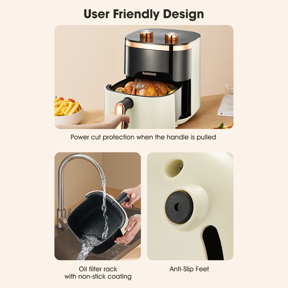 SAMONO 4L Large Capacity Air Fryer 700W Basket with 5 Composite Layer Non-Stick - SW-AFW04S