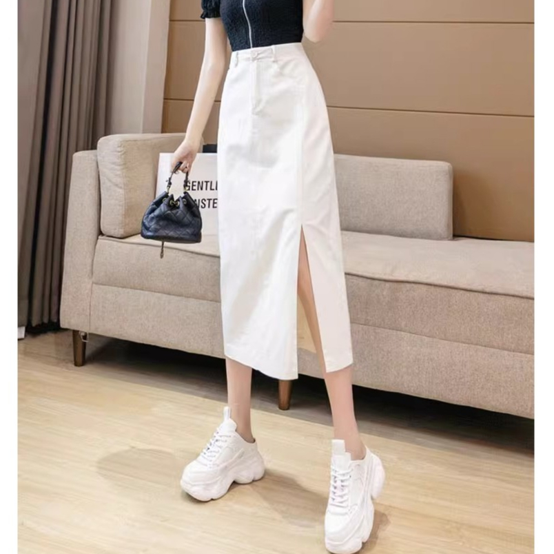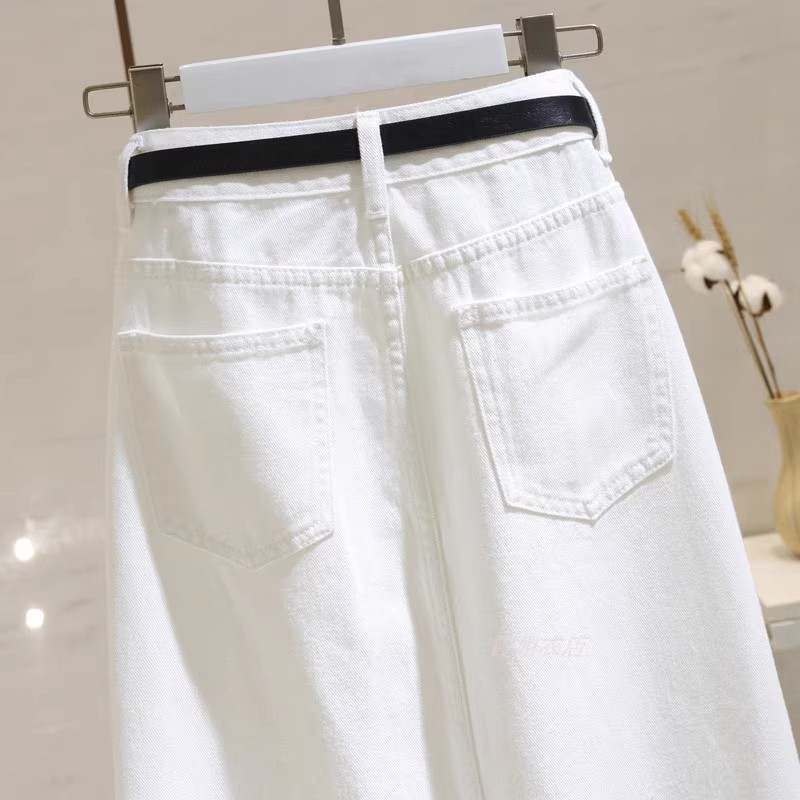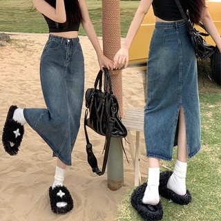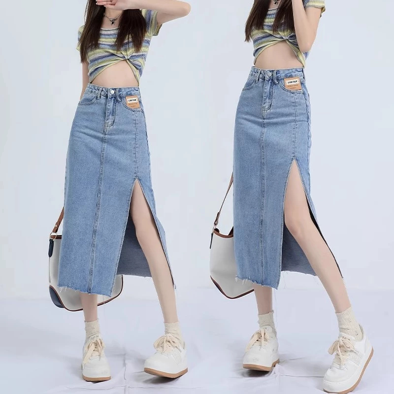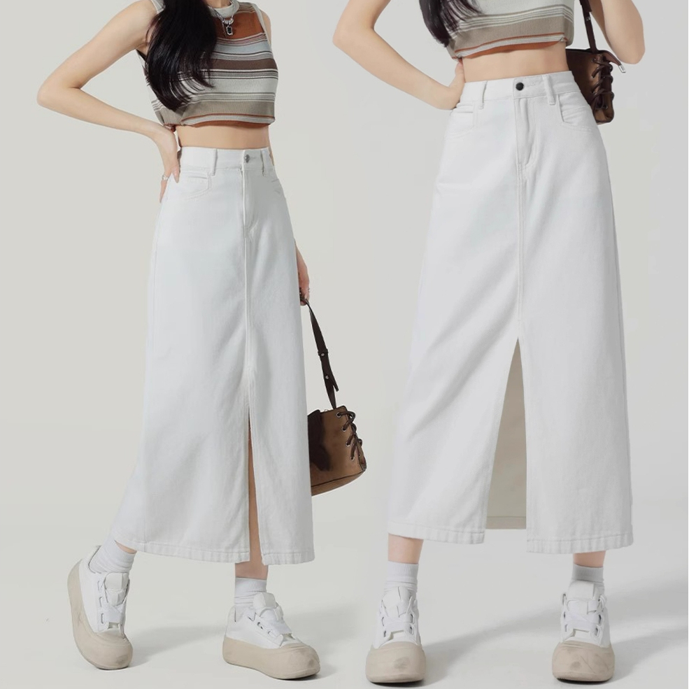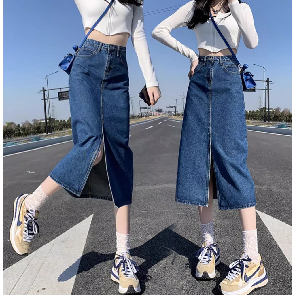HOT~PLUS SIZE Long skirt loose A-line fishtail skirt denim MIDI blue white high waist office maong