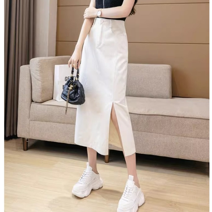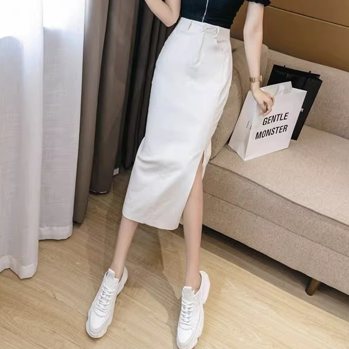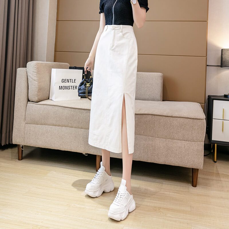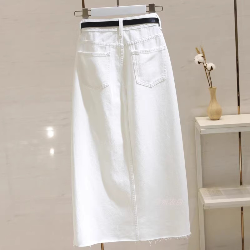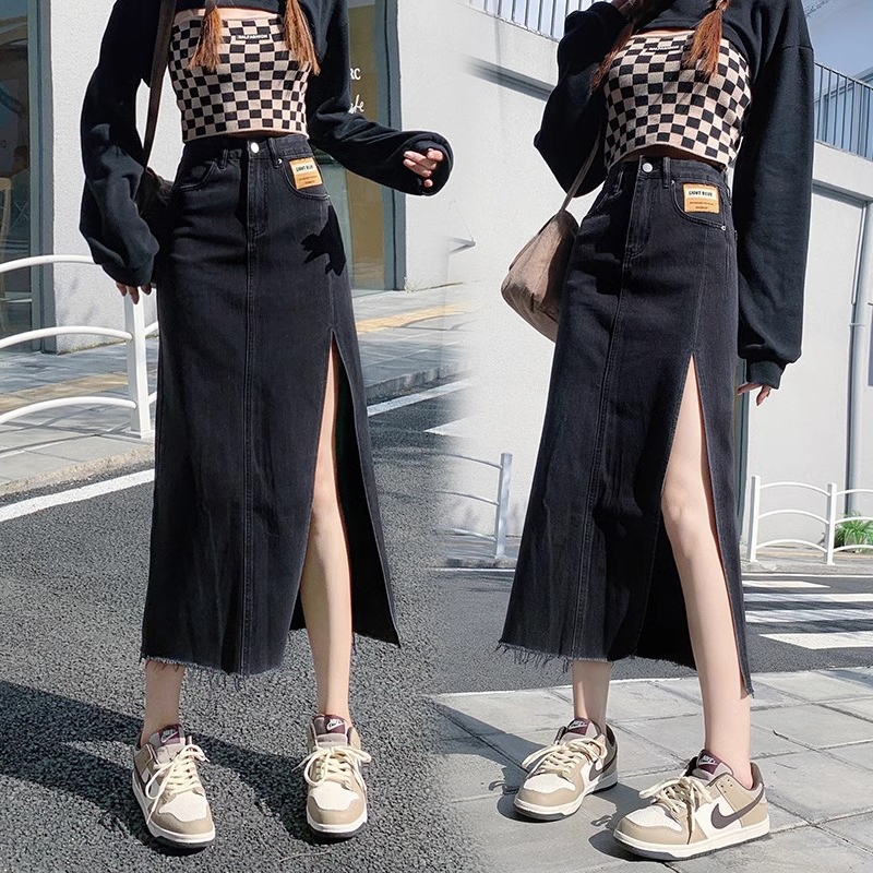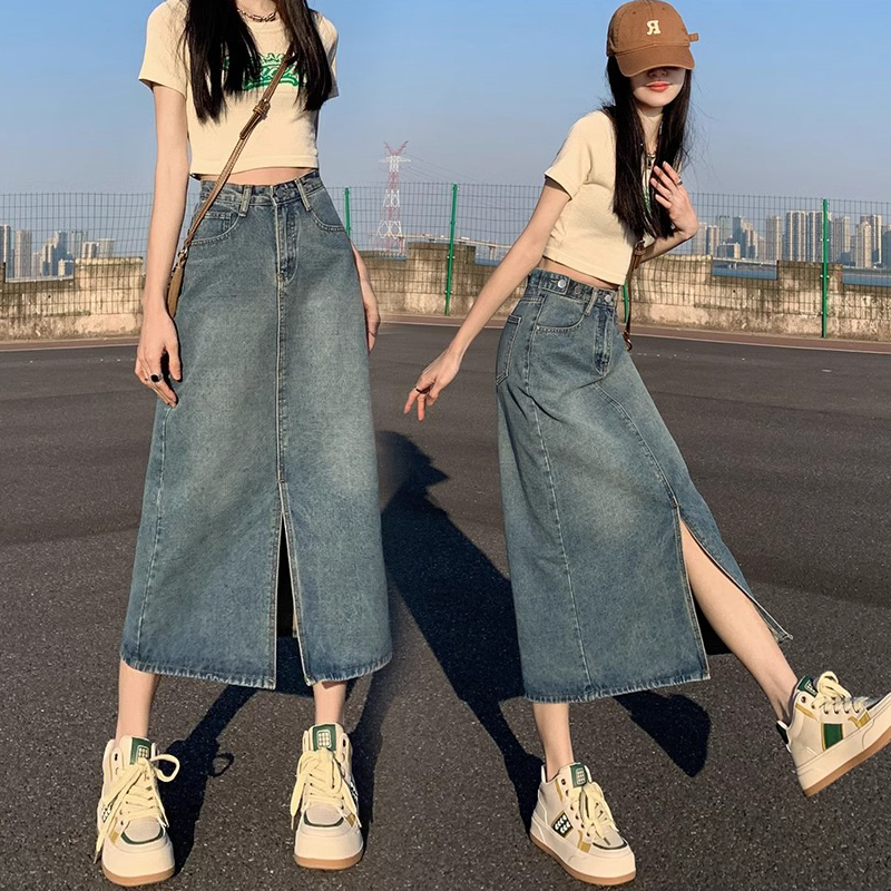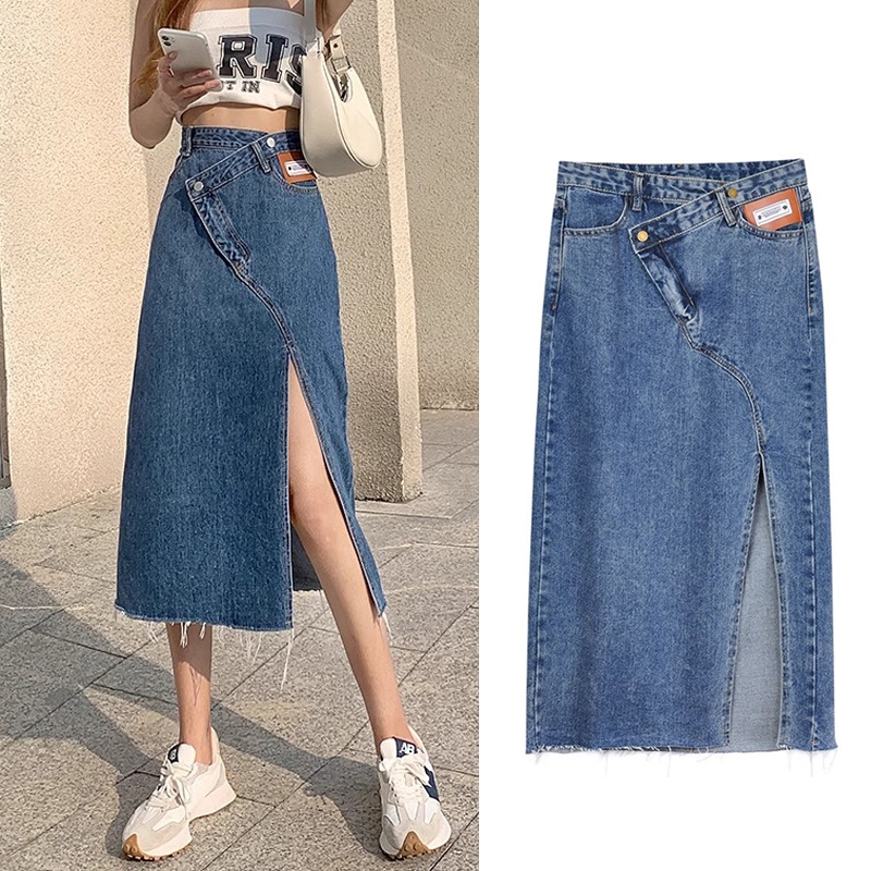 HOT~PLUS SIZE Long skirt loose A-line fishtail skirt denim MIDI blue white high waist office maong