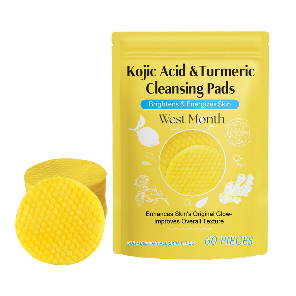 Kojic Acid & Turmeric Cleansing Pads - Fade Dark Spots, Glow Up Scars, Unclog Pores, Exfoliating Face Pad