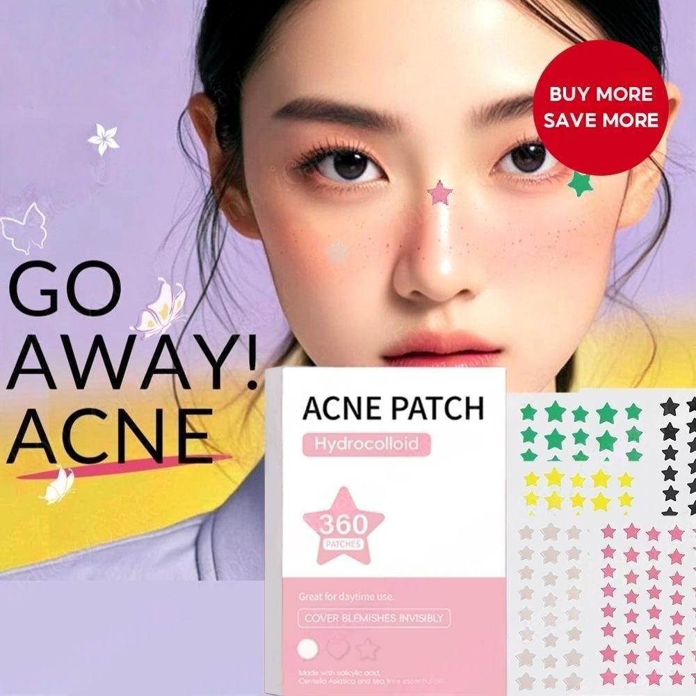 360PCS Star Pimple Patch Waterproof Colorful Cute Invisible Anti-Acne Patch Face Repair Sticker Tool