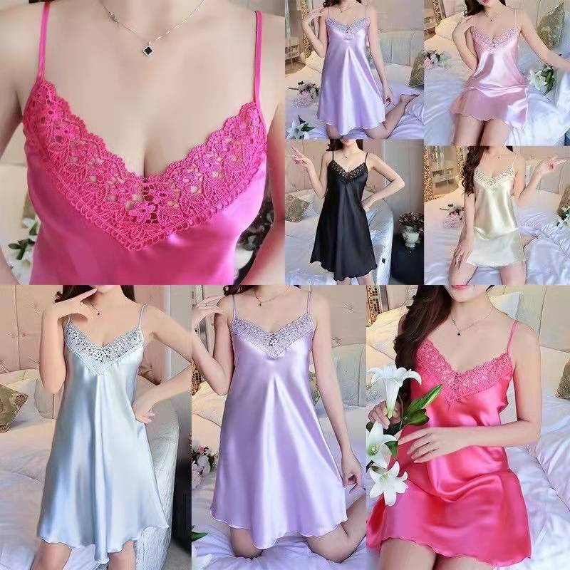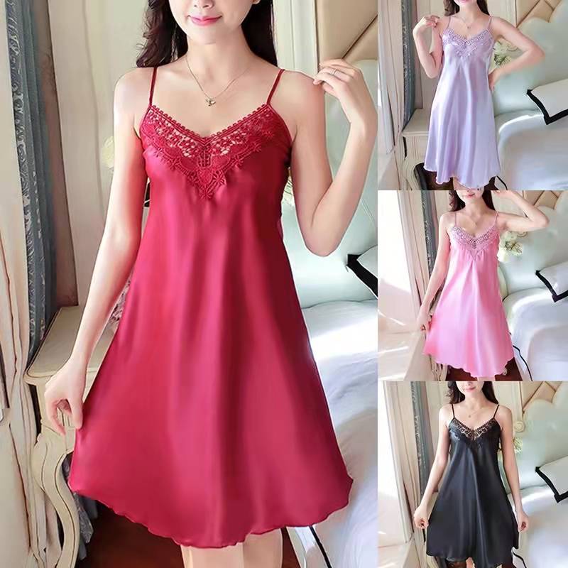 @CLOUDY big size summer night dress daster for woken sleevaeless faux silk satin sleepwear nightwear