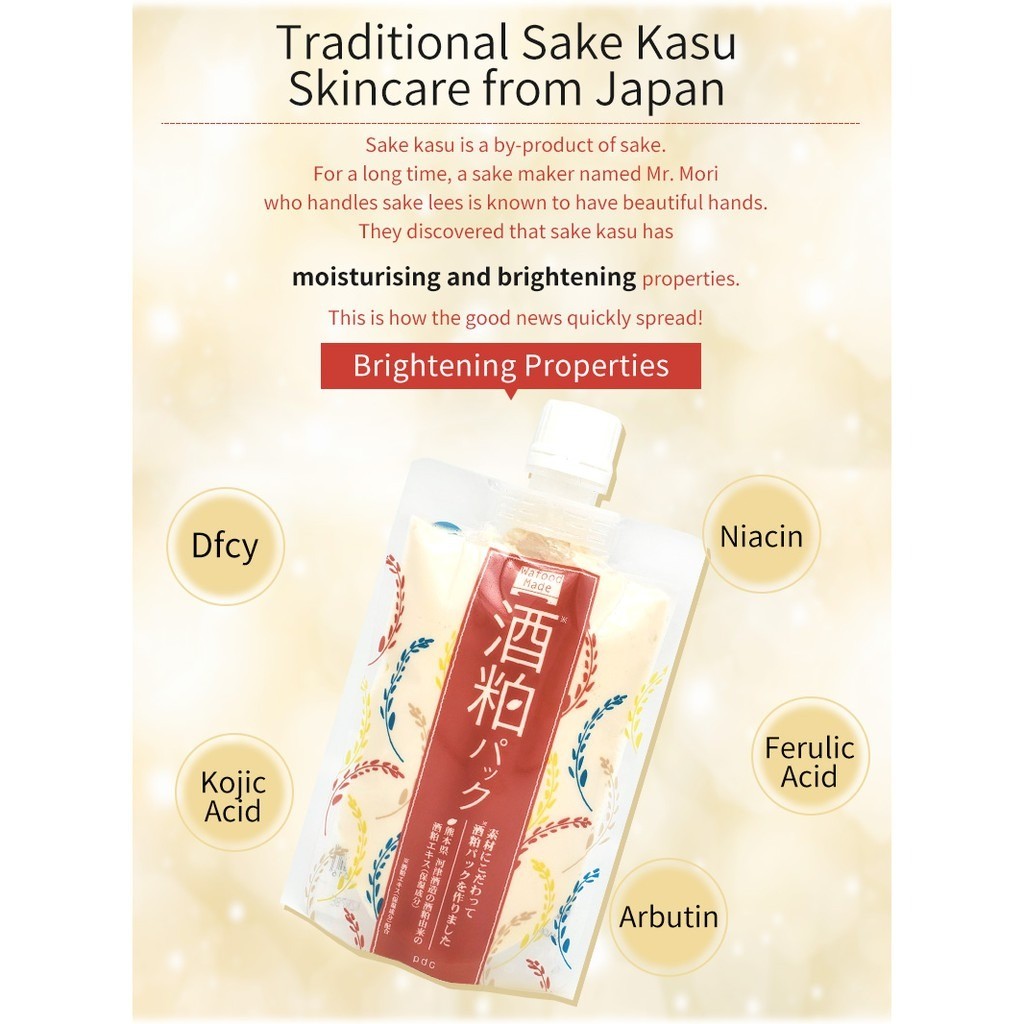PDC Wafood Made Sake Kasu Sake Lees Wash Off Pack 170g / Mask 10 Sheets