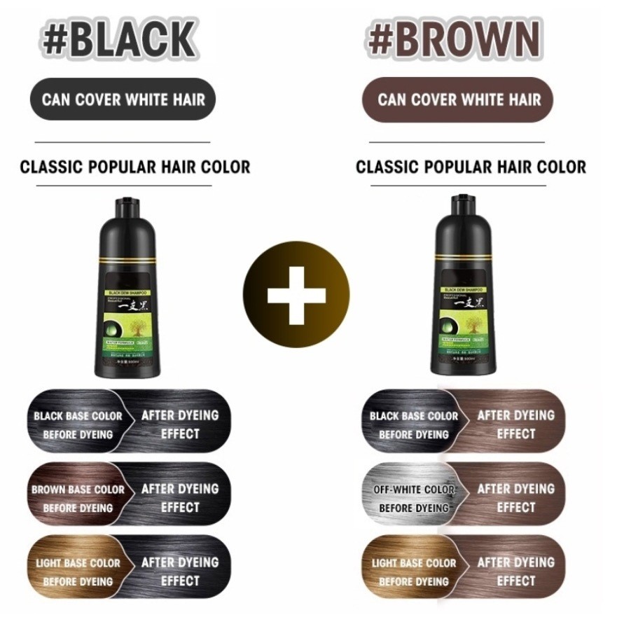 Herbal Hair Dye Shampoo for Black or Brown Color, Quick 5-Minute Application, 500ml