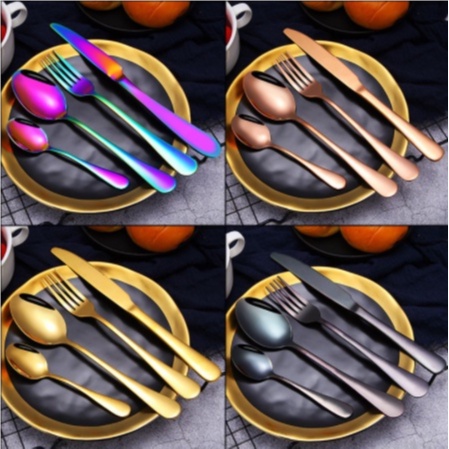 4Pcs Flatware Stainless Steel Tableware Sets Gold Finished Polished Cutlery Sets Spoon Fork Knife