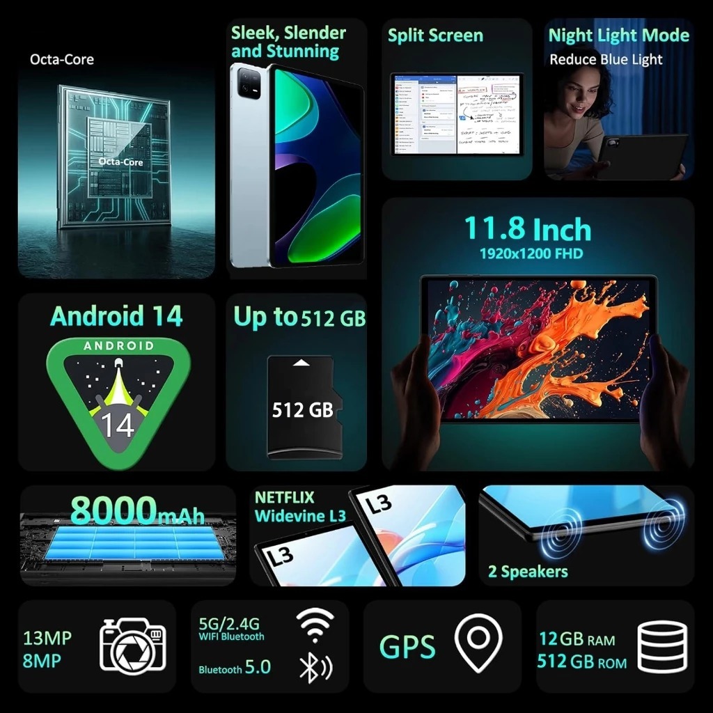 Pad 6 Tablet Android 5G 12inch for Kids Online Study Tablet 12GB+512GB 10000mAh Battery COD
