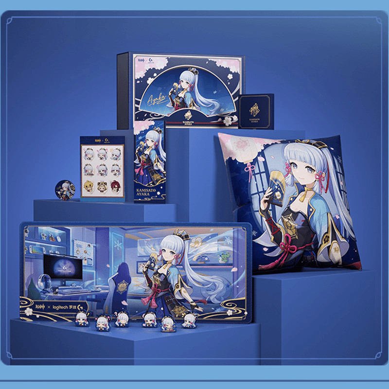 Genshin Impact Co branded Gift Box Wireless Keyboard and Mouse Set Kamisato Ayaka Custom G517 Keyboard G309 Mouse Game Bluetooth Hot Plug Customized