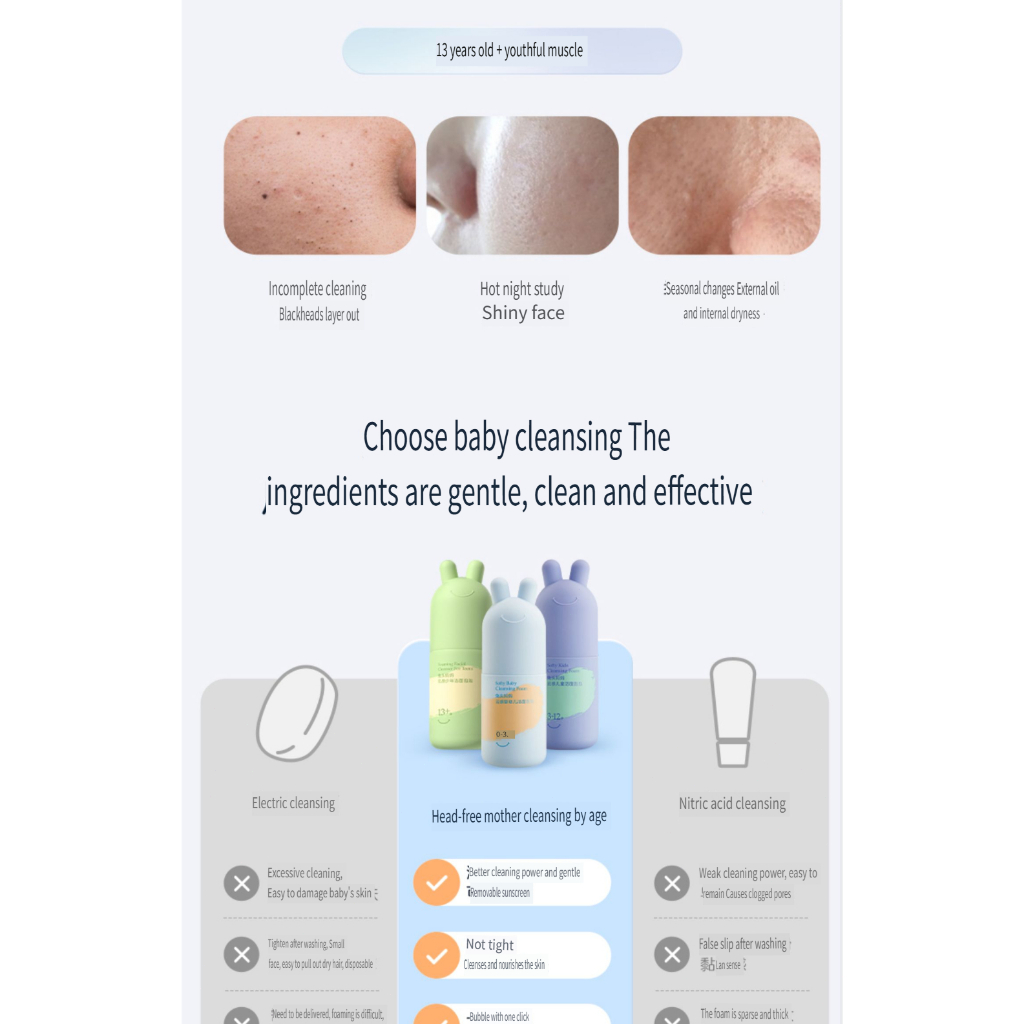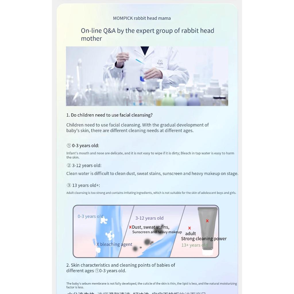 Mompick 兔头妈妈 Kids Foaming Facial Cleanser 90ml 0-3-12-13+ Years Old Easy to Remove Sunscreen