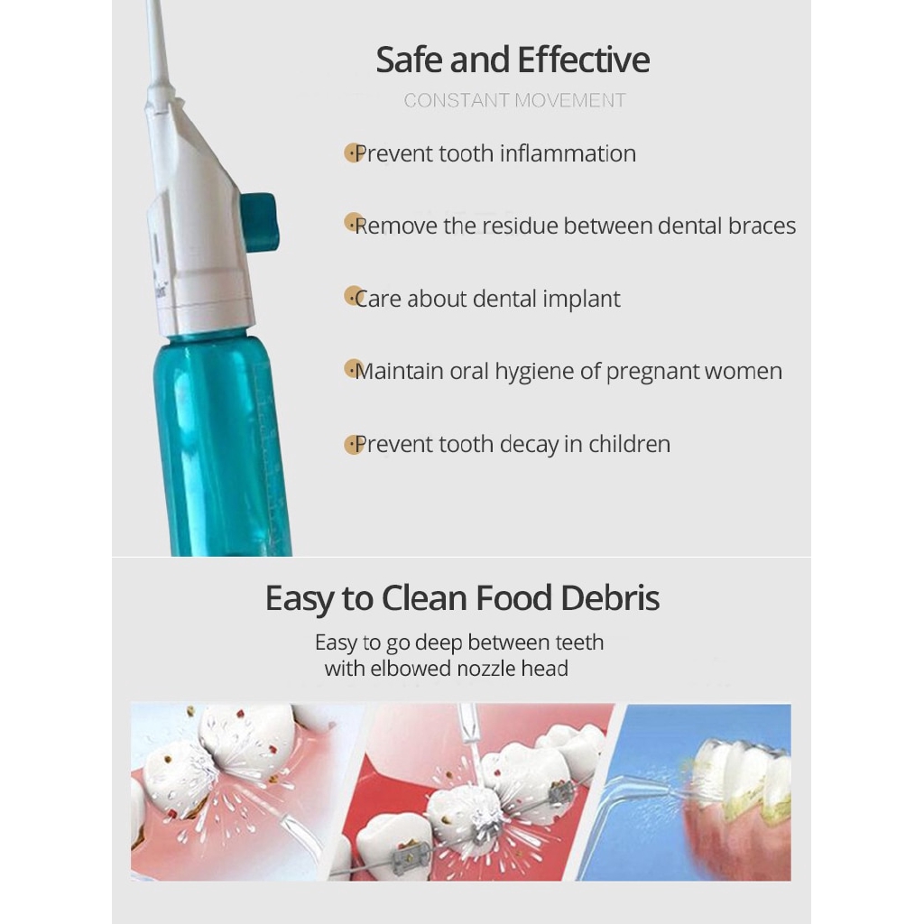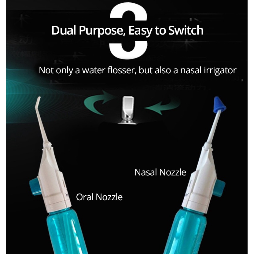 Dual Using Oral Irrigator With Nasal Nozzle Cordless Oral & Nasal Jet Water Flosser Manual Teeth & Nose Cleaning Caring Device