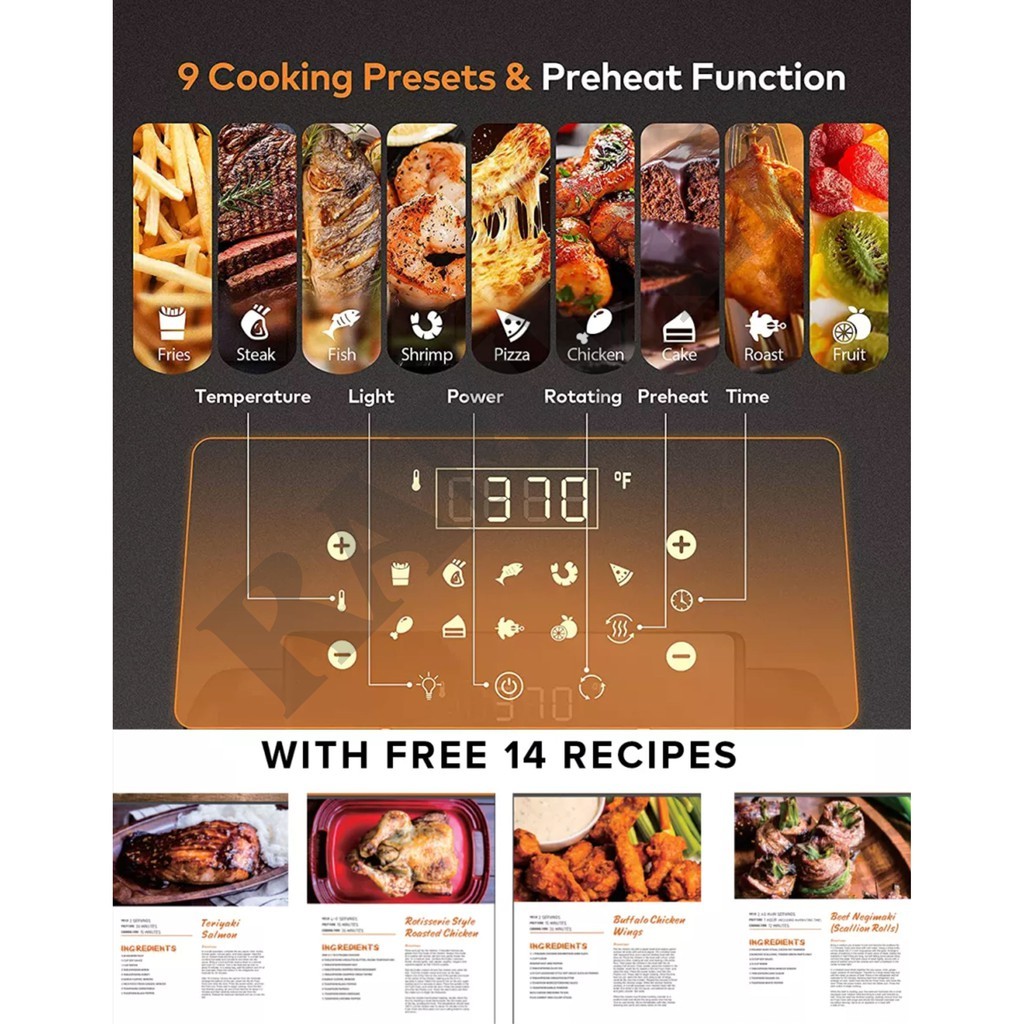 Ramlly]jC'12L]Ts<Capacity Multi-function Air Fryer oven with 10 preset.rotisserie basket and shaft
