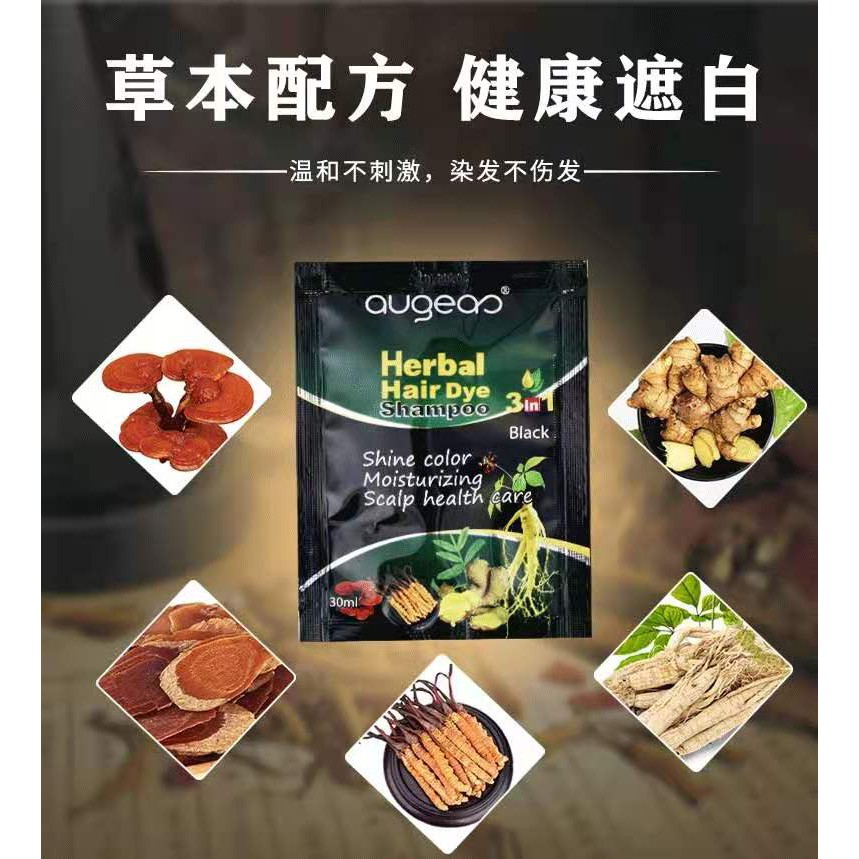 COD AUGEAS 30ml HERBAL HAIR DYE SHAMPOO SHINE COLOR MOISTURIZING SCALP HEALTH CARE