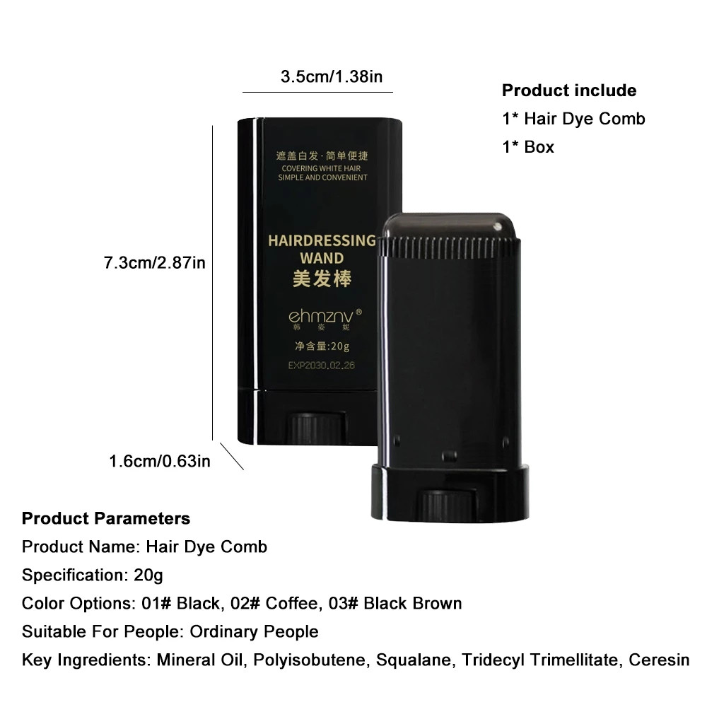 Hair Dye Comb | Black/Brown 2-Tone | 2-in-1 Dye & Comb | Easy Use No Mess |