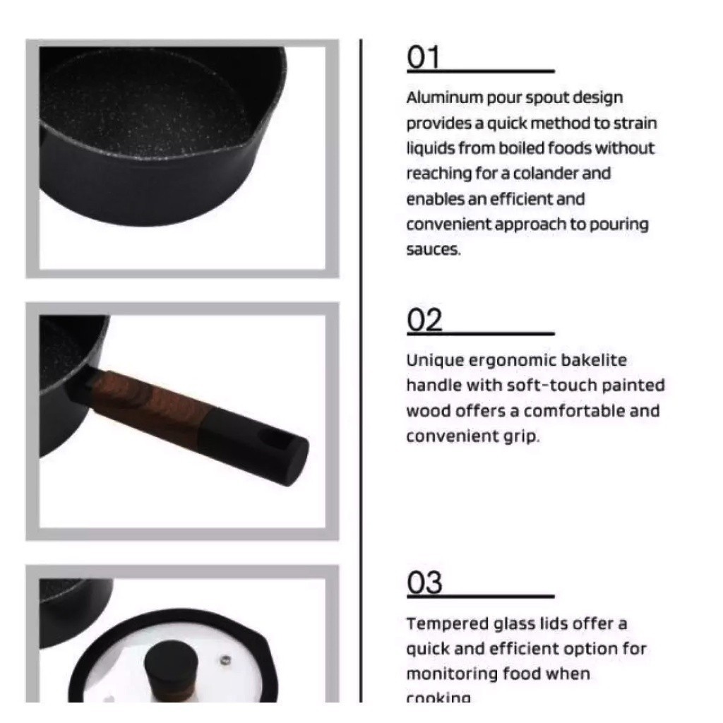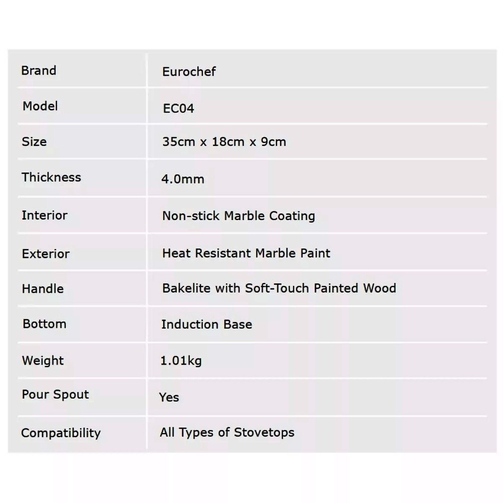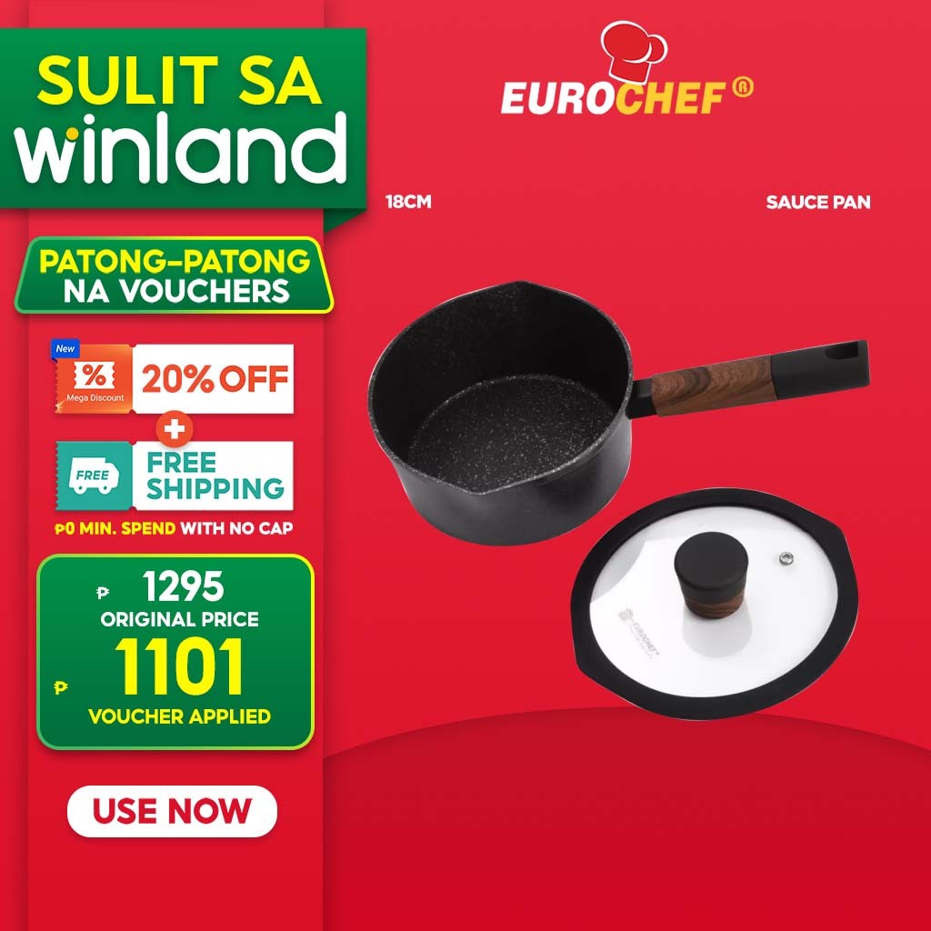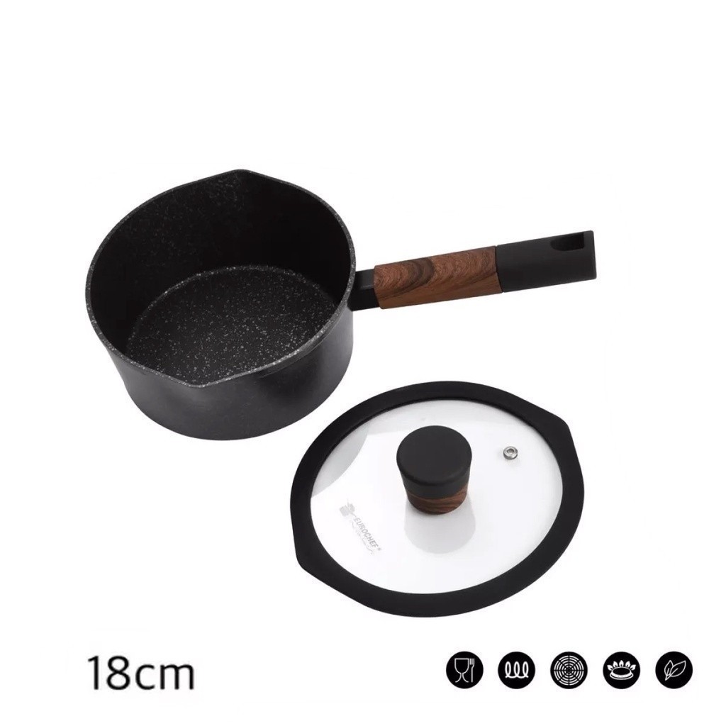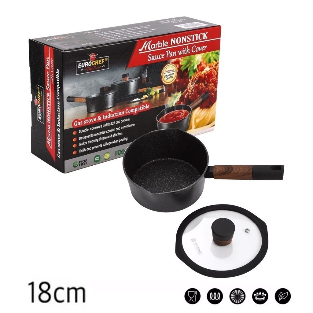 Eurochef by Winland 18cm Non-Stick Marble Sauce Pan w/ Cover Glass Lid Handle Aluminum Cookware EC04