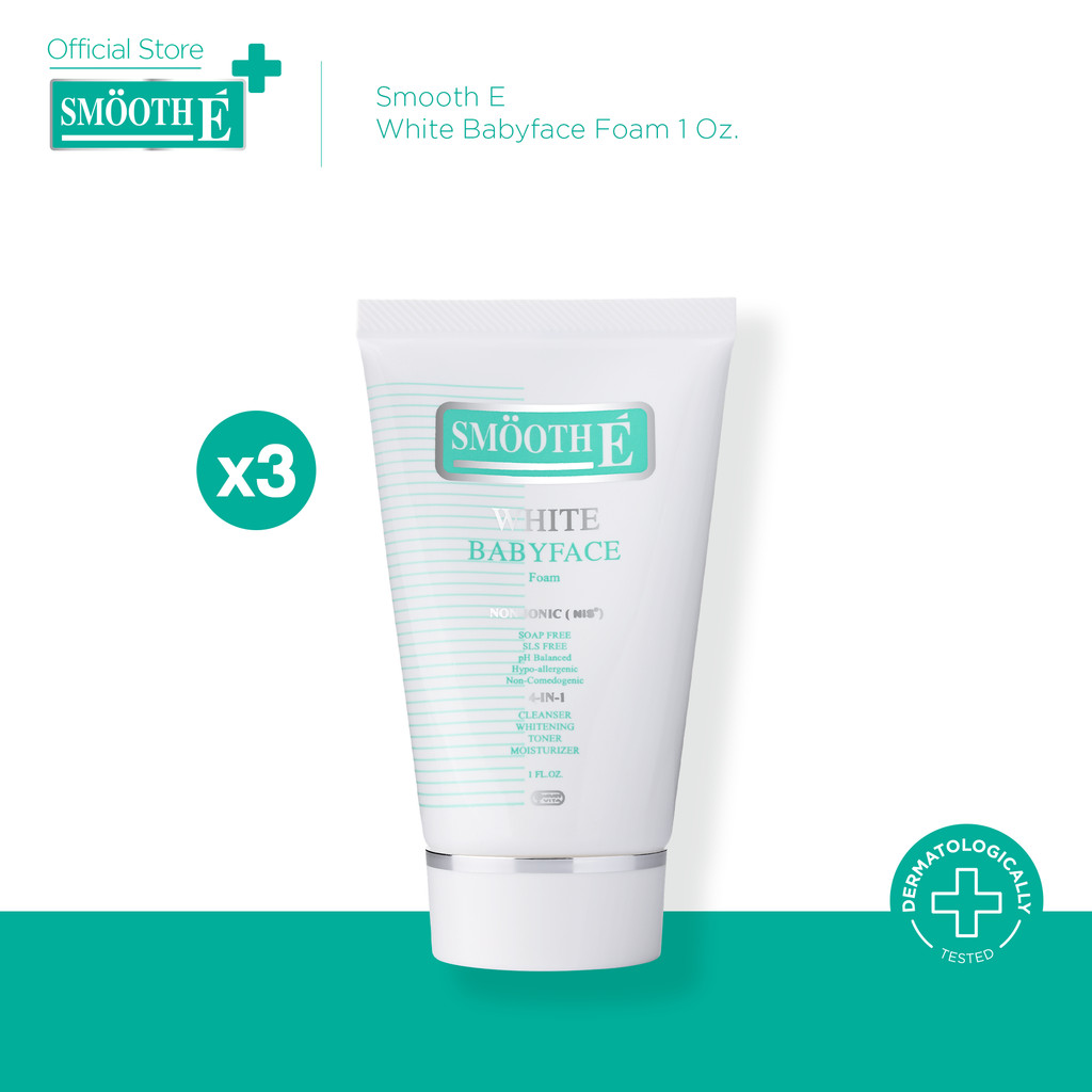 [Pack Of 3 Great Value] Smooth E White Babyface Foam 1 Oz. Baby Face pH5 Vit C&E Brightening Skin For Dull