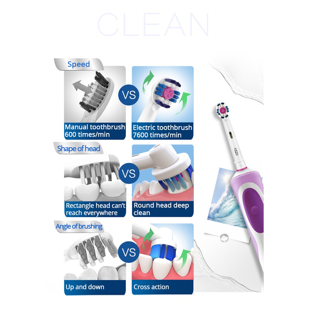 Oral B Electric Toothbrush Rechargeable 100% Waterproof Soft Bristle with 4 free heads as gift Rotation Clean Teeth Brush