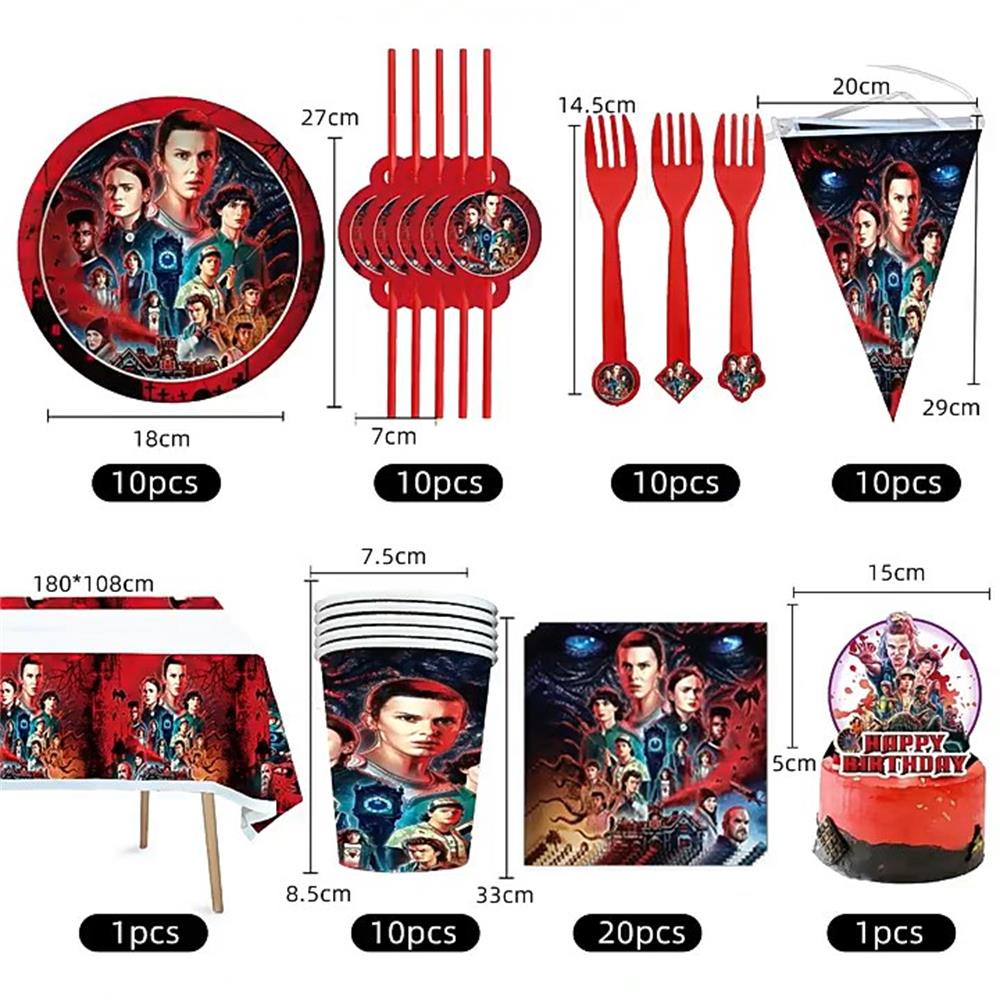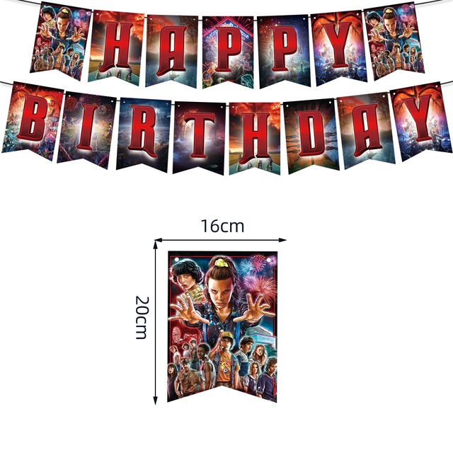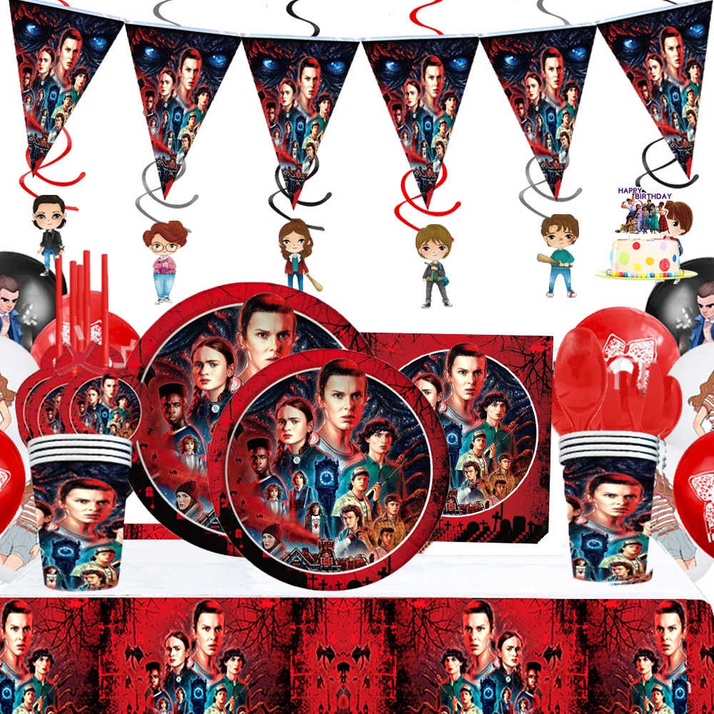 Stranger Things Themed Birthday Party Decor Banner Cake Topper Paper Plate Cup Napkins Boys Kids Party Supplies