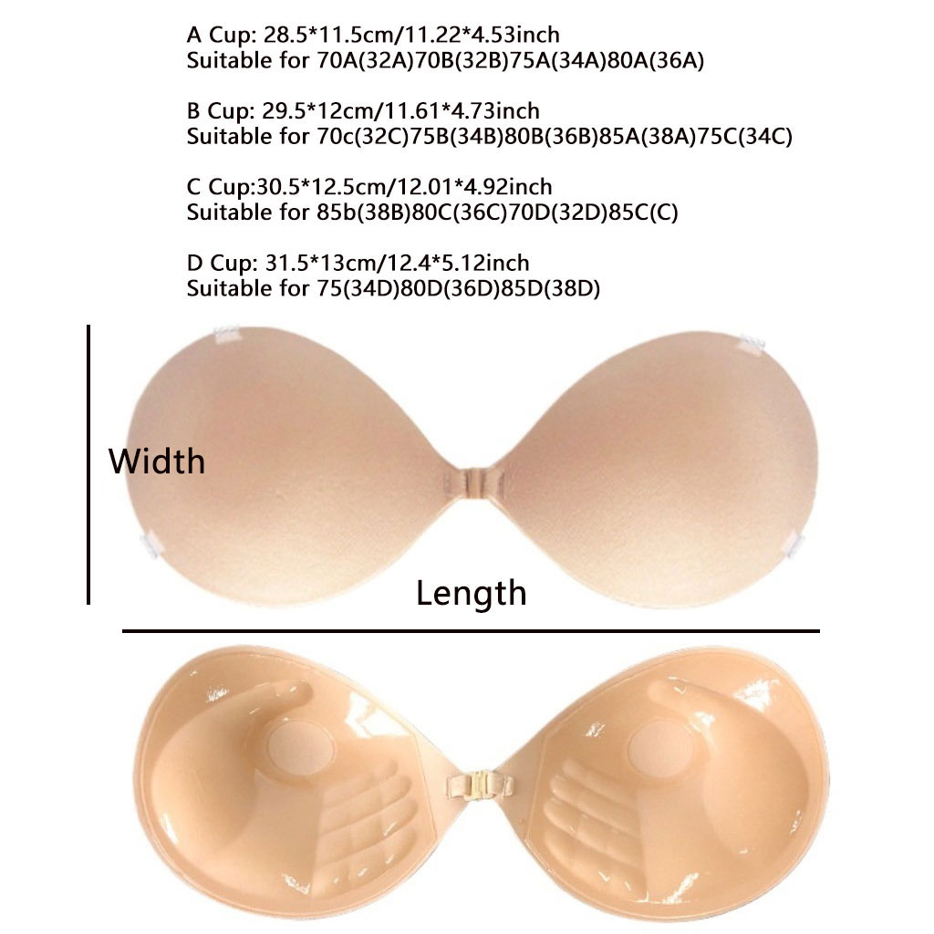 Strapless Push Up Bra - Silicone Adhesive Lift, Invisible & Reusable for Dresses (A-D Cup)