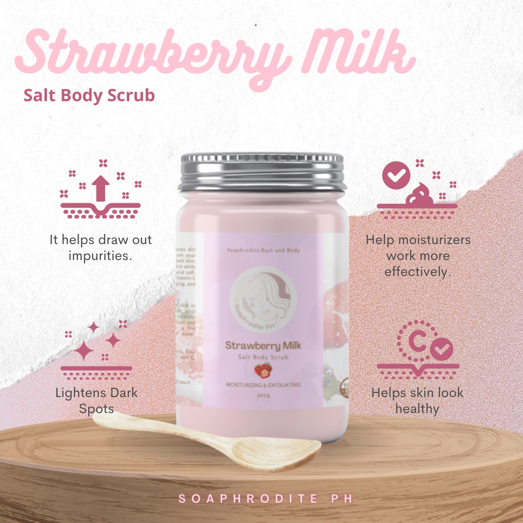 Strawberry Milk Salt Body Scrub with Wooden Spoon 300g