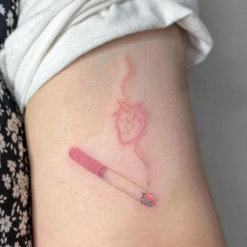 Strawberry cigarette tattoo Temproary tattoo pink Body art