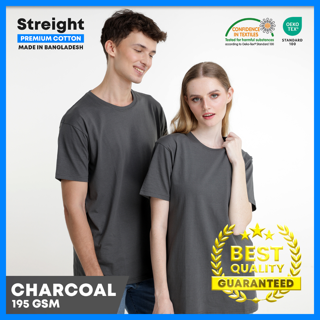 Streight Premium COAL GRAY 100% Cotton Blank Plain T Shirt Tees Top Tops for Men and Women - Unisex