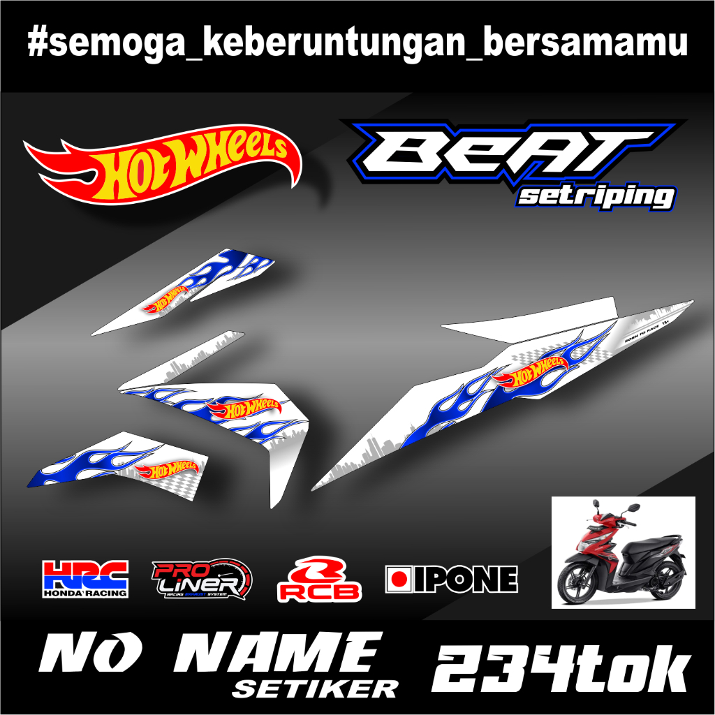 Striping sticker setiker Motor Beat variation HOTWHEELS (234tok) 2016 2017 2018 2019 Fi / Fi New Esp Iss Honda Variation / Striping beat motif Hotwheels